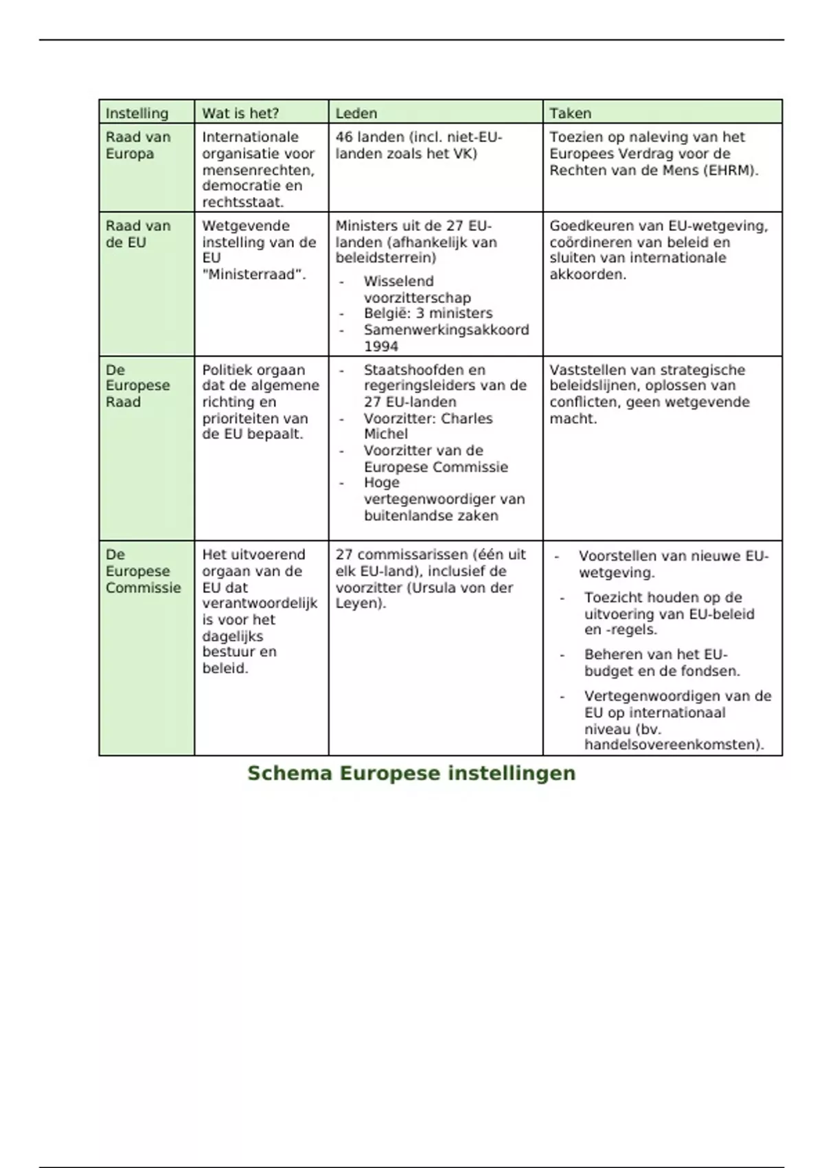 Samenvatting Europese instellingen