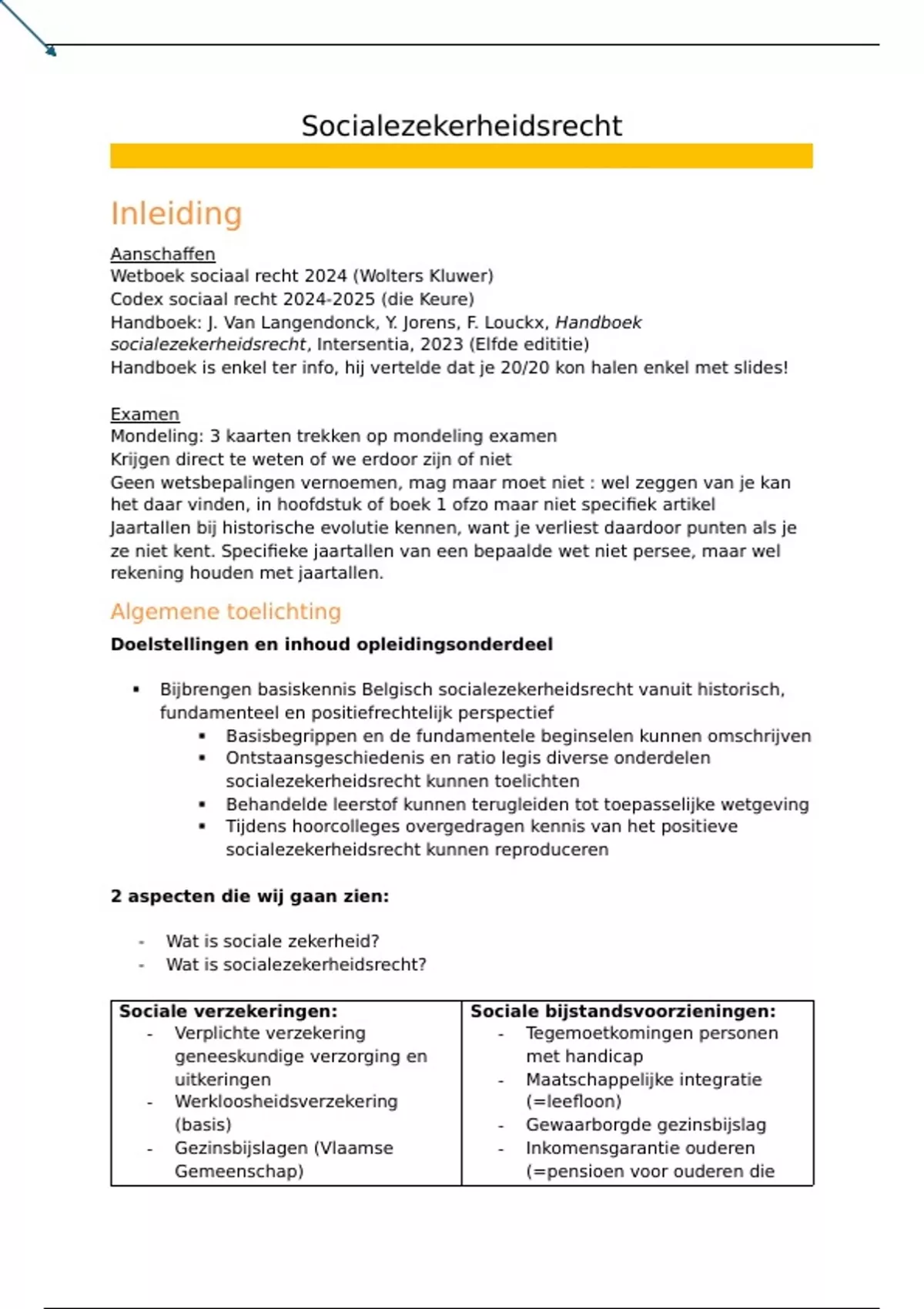 Dit document bevat de volledige samenvatting van het vak sociaal zekerheidsrecht alsook het handboek. Op het einde van de samenvatting zijn er mogelijke examenvragen.