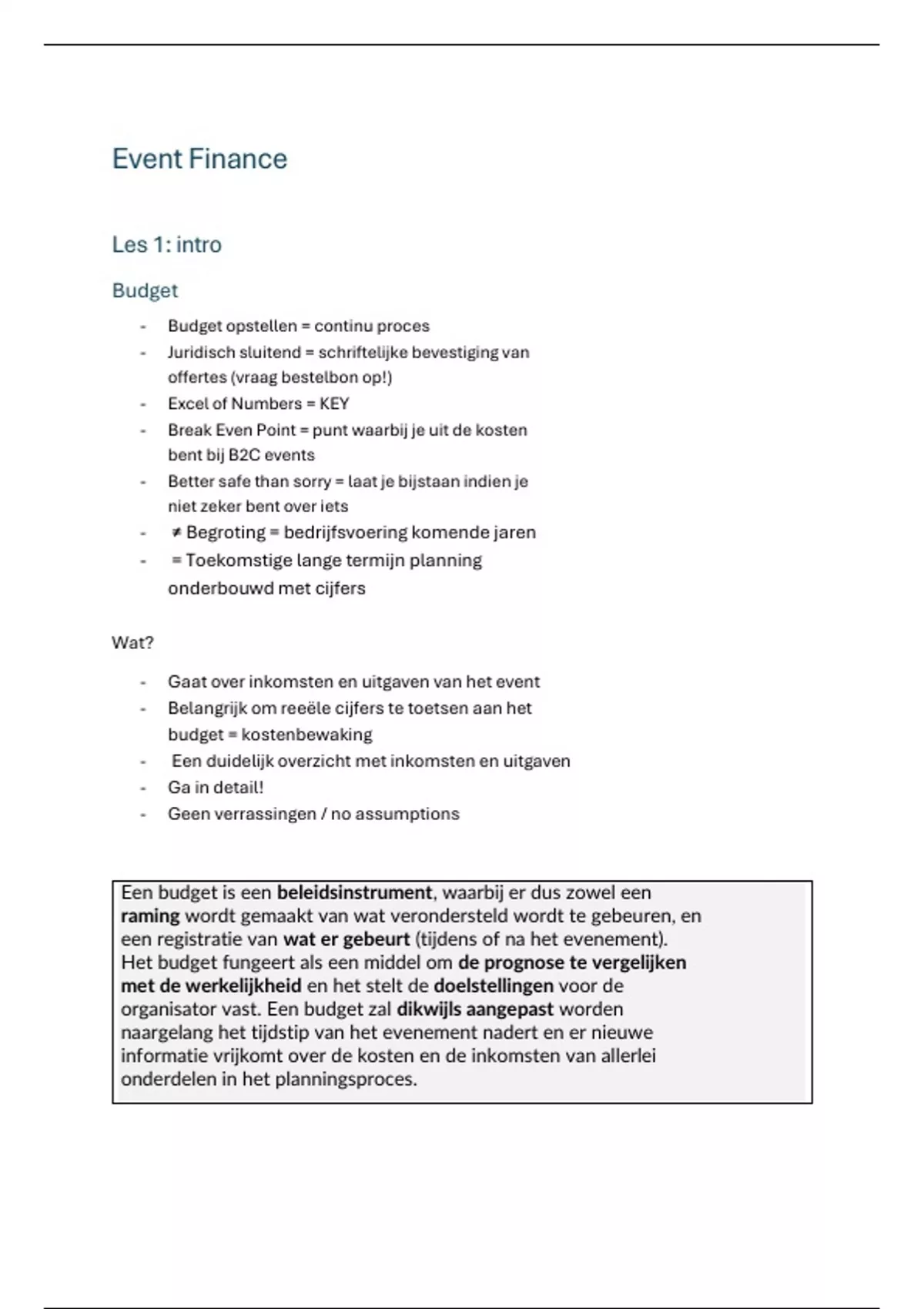 organisator vast. Een budget zal dikwijls aangepast worden