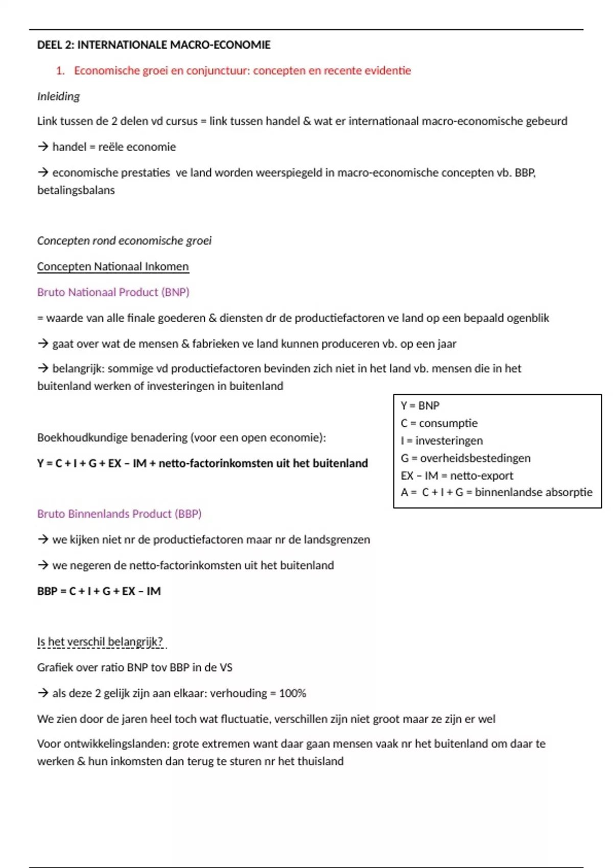 → economische prestaties ve land worden weerspiegeld in macro-economische concepten vb. BBP,
