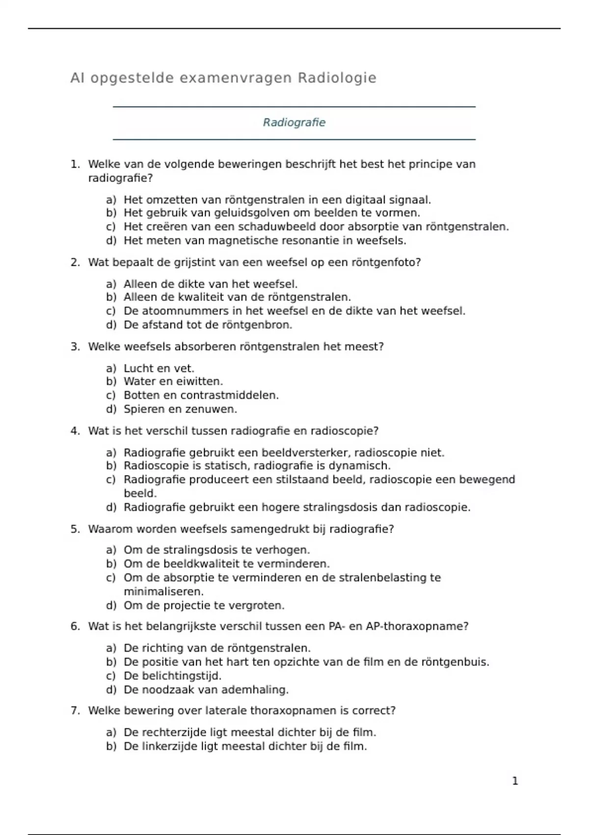 Deze oefenvragen zijn van het meerkeuze type en helpen je de theoretische kennis rond radiologie verder in te oefenen zodat je helemaal klaar bent voor het examen diagnostische en therapeutische technieken.