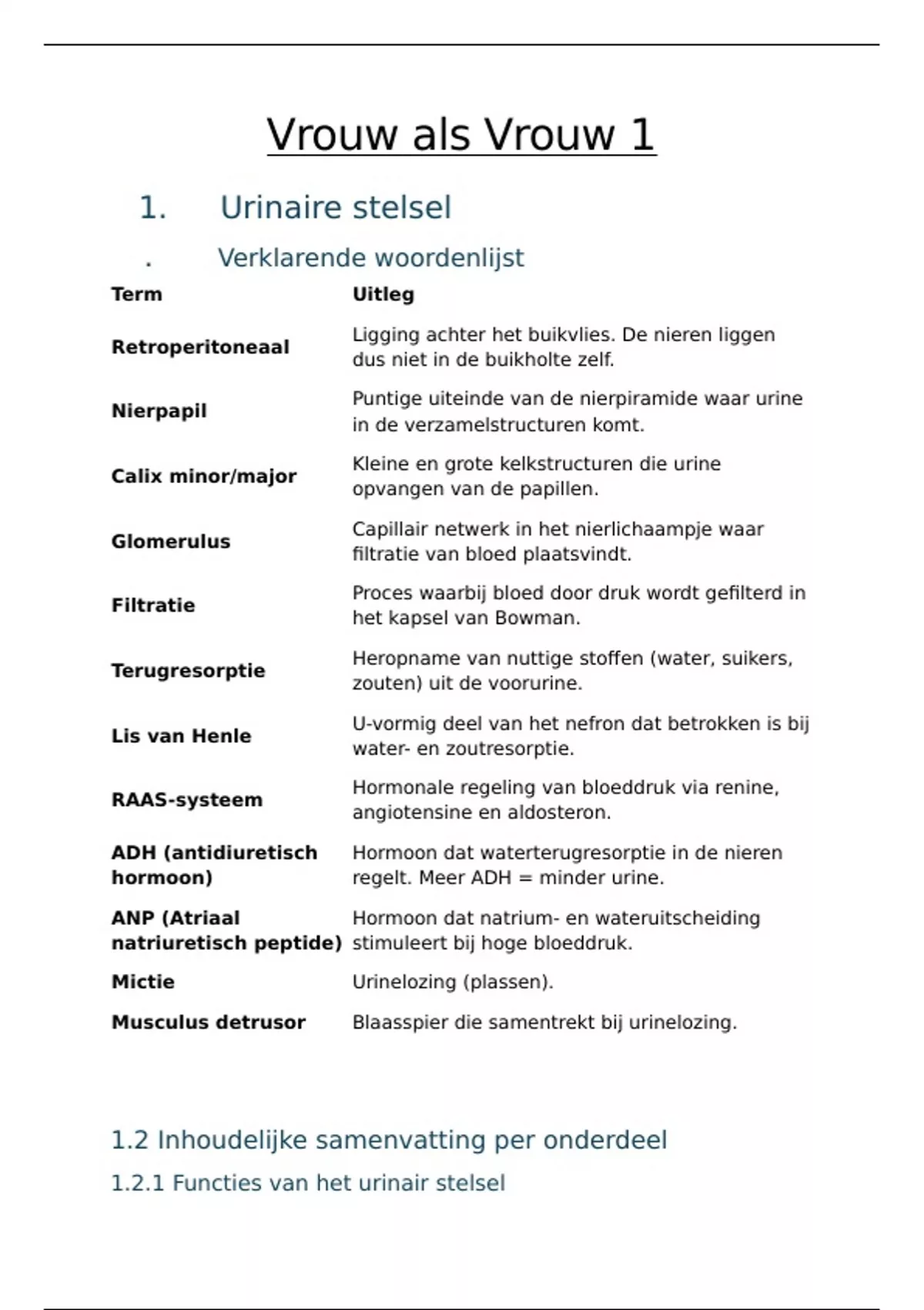 Voorurine komt in nierbuis terecht → samenstelling wordt