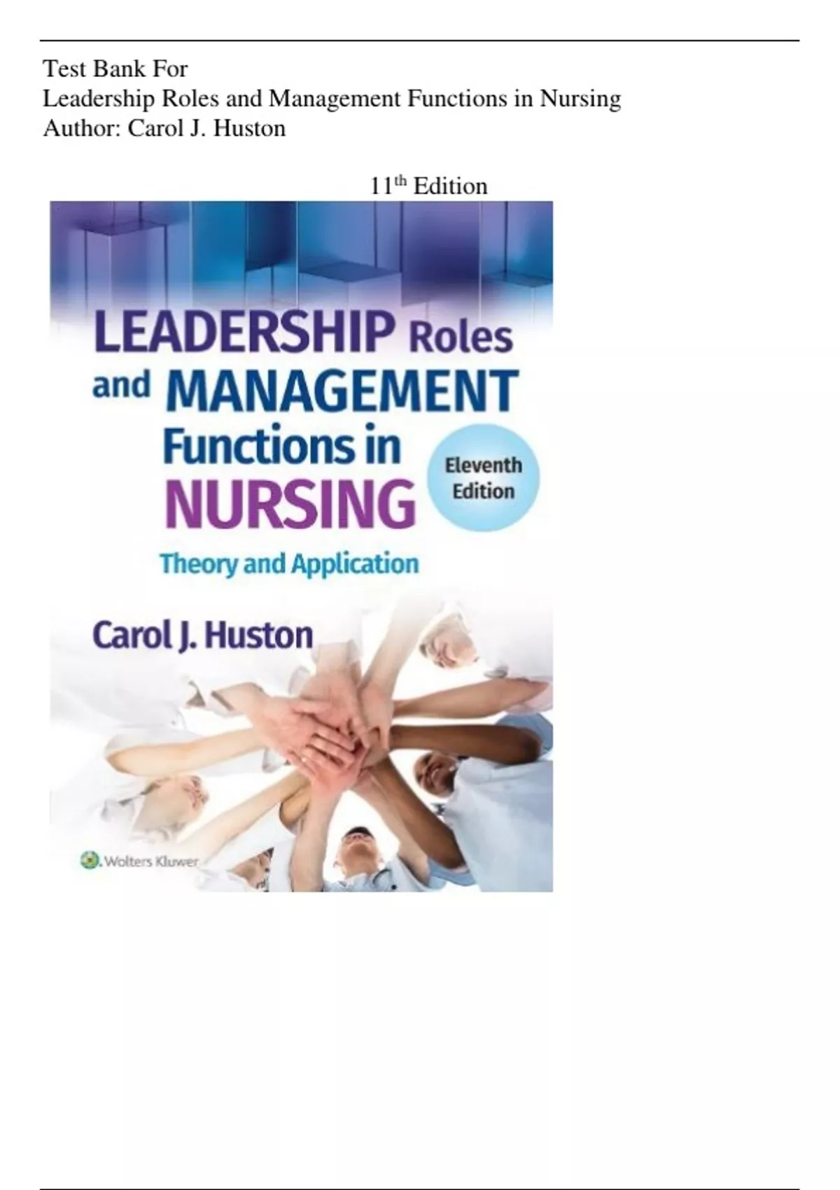 TEST BANK Leadership Roles and Management Functions in Nursing: Theory and Application 11th Ed by Carol J. Huston Chapter 1-25, Newest Edition
