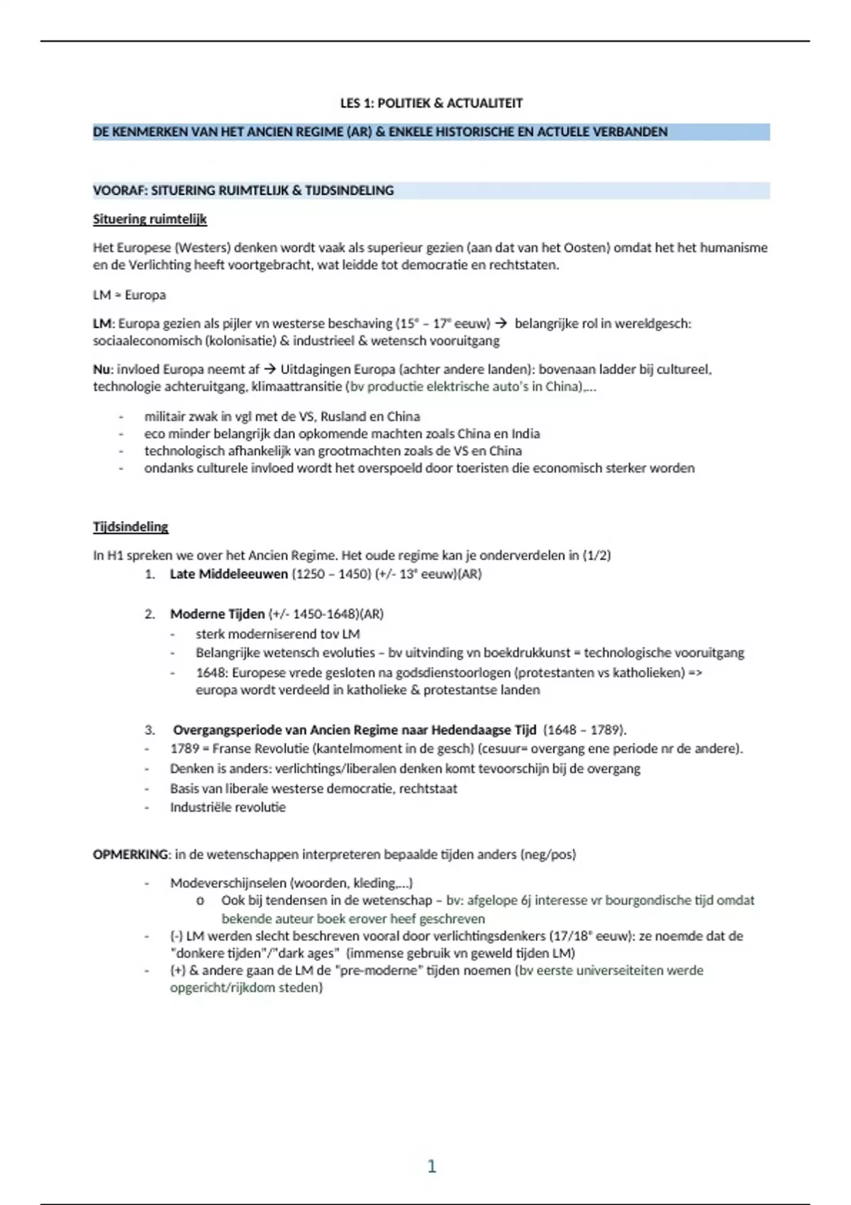 In H1 spreken we over het Ancien Regime. Het oude regime kan je onderverdelen in (1/2)