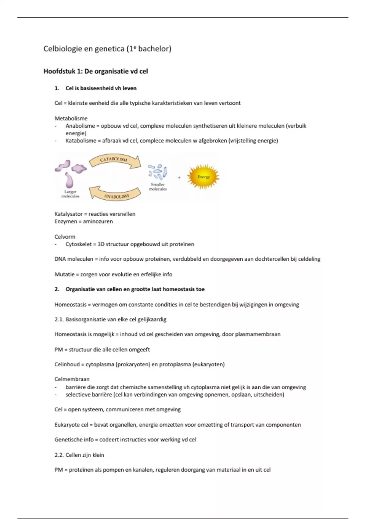 - Katabolisme = afbraak vd cel, complece moleculen w afgebroken (vrijstelling energie)