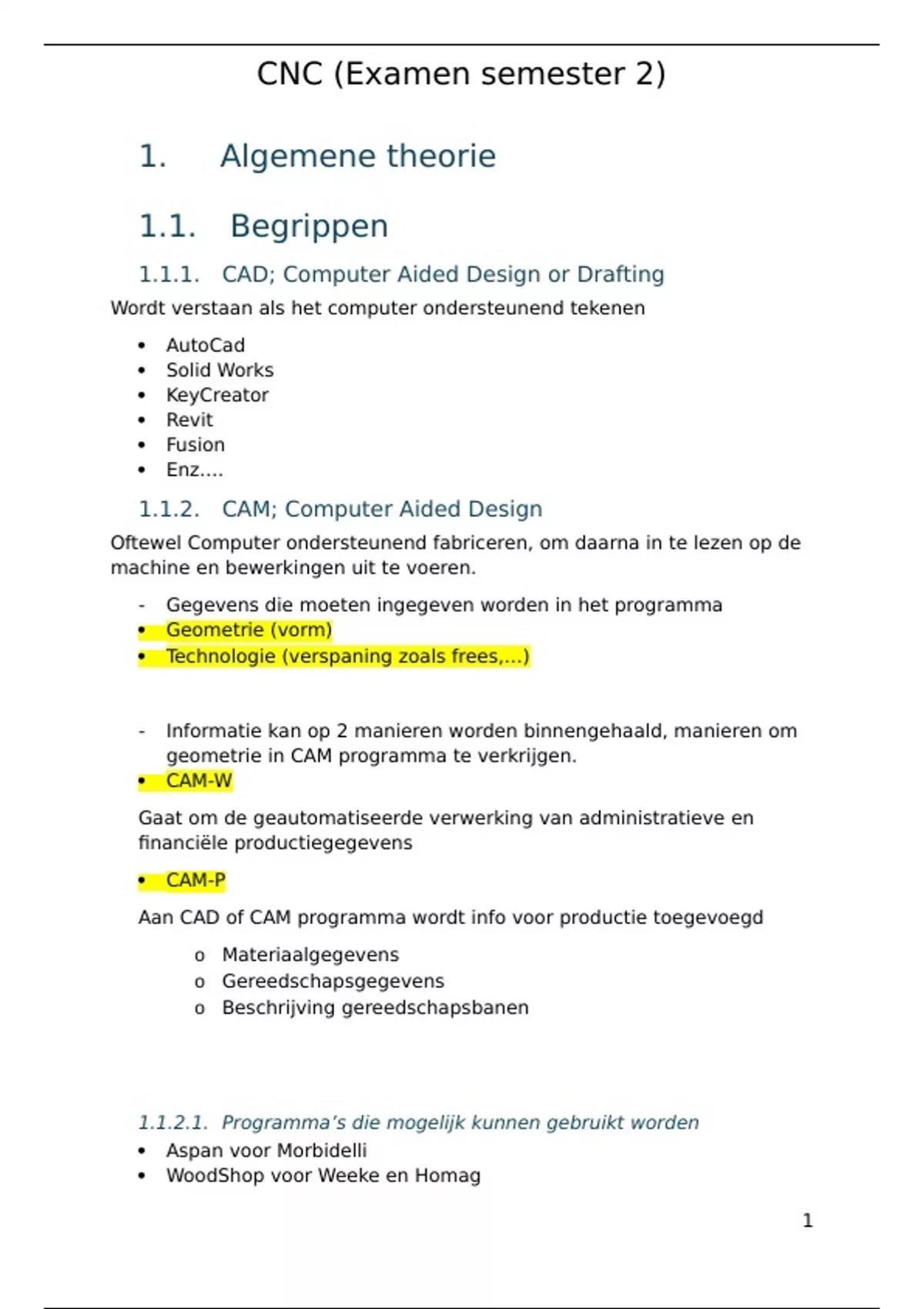 Hierin wordt alles samengevat van de syllabus CNC tot en met oefening 1 in het boek (pag. 84)