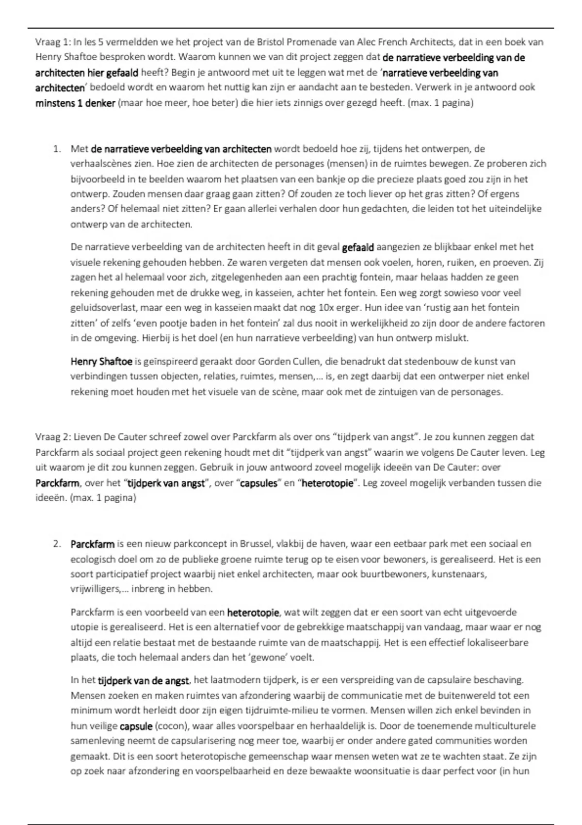 Parckfarm, over het “tijdperk van angst”, over “capsules” en “heterotopie”. Leg zoveel mogelijk verbanden tussen die