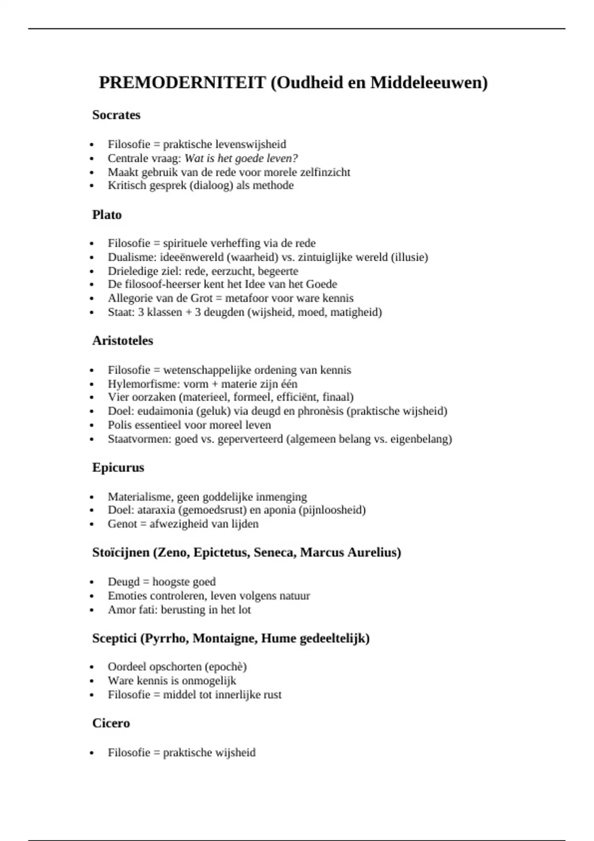 Samenvatting Overzicht filosofen - Examen Filosofie - Bachelor rechten - Prof Willem Lemmens