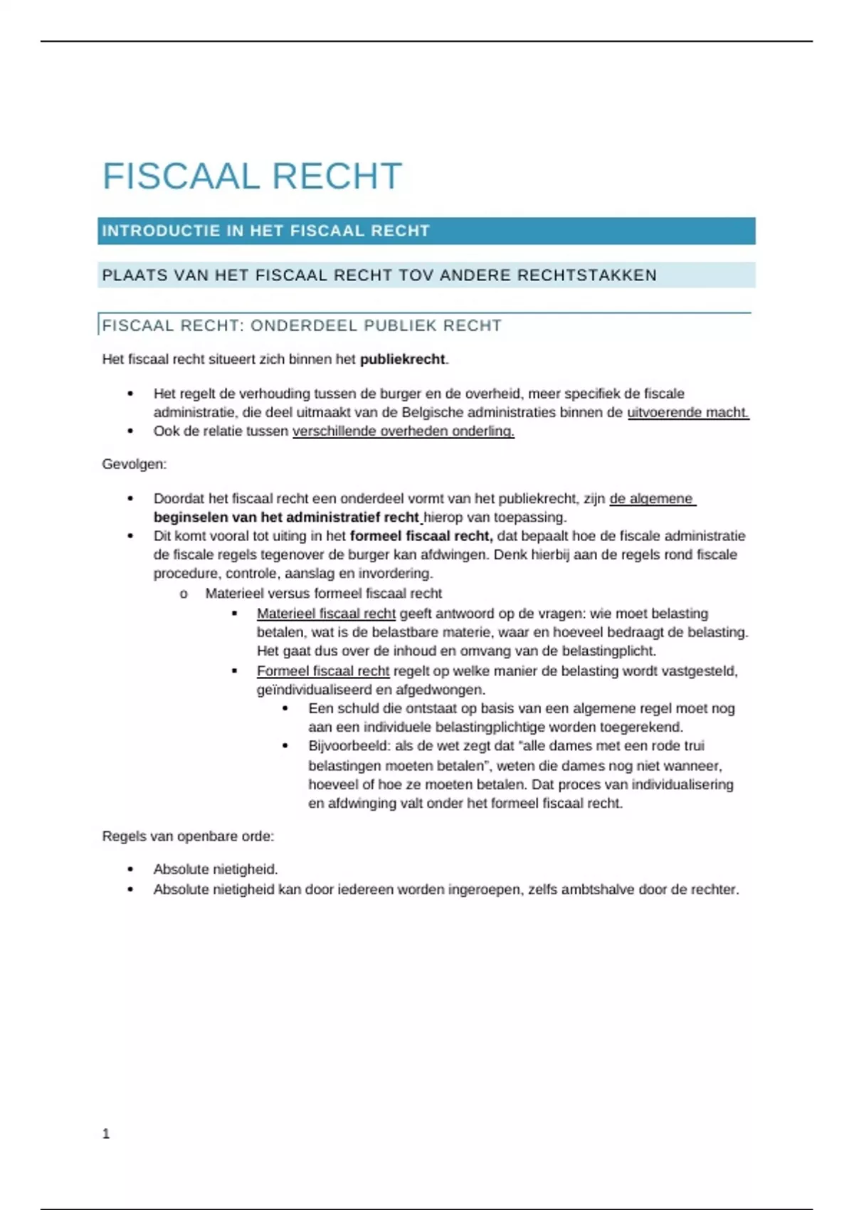 FISCAAL RECHT: ONDERDEEL PUBLIEK RECHT