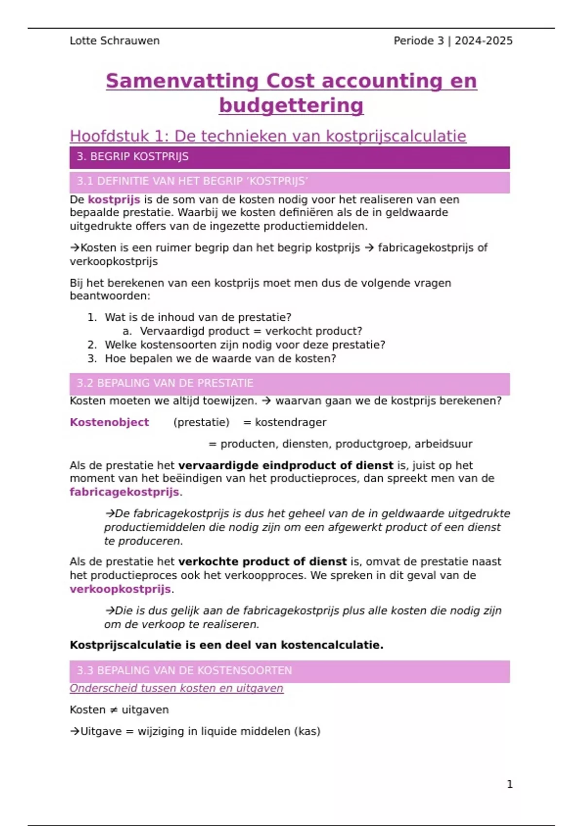 Hoofdstuk 1: De technieken van kostprijscalculatie