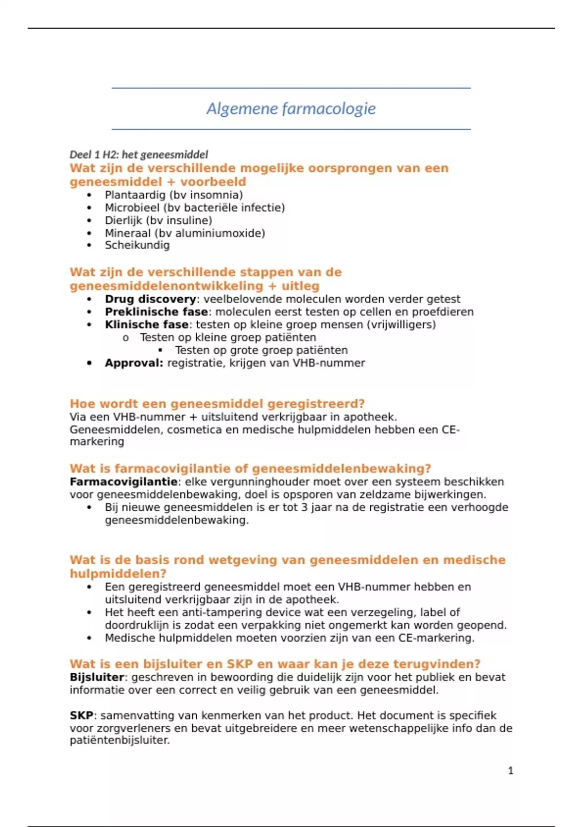 Deel 1 H2: het geneesmiddel