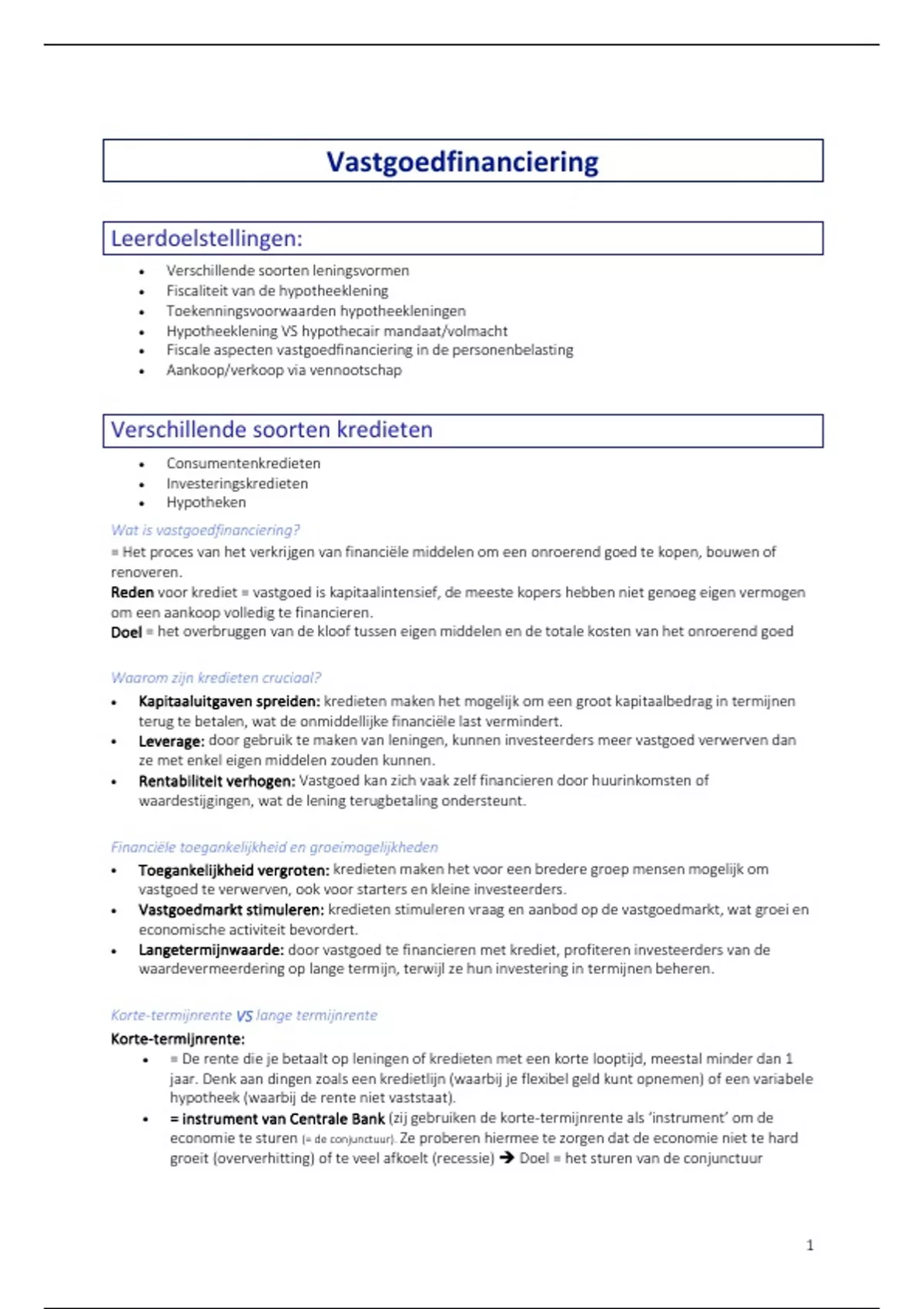Samenvatting - Vastgoedfinanciering