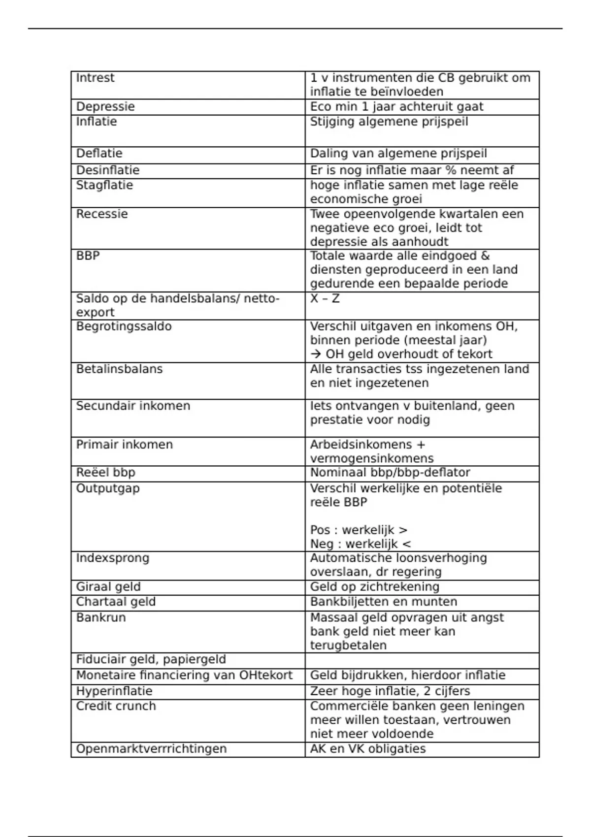 Samenvatting van 3 pagina's voor het vak Macro economie en beleid aan de KU Leuven (Begrippenlijst)