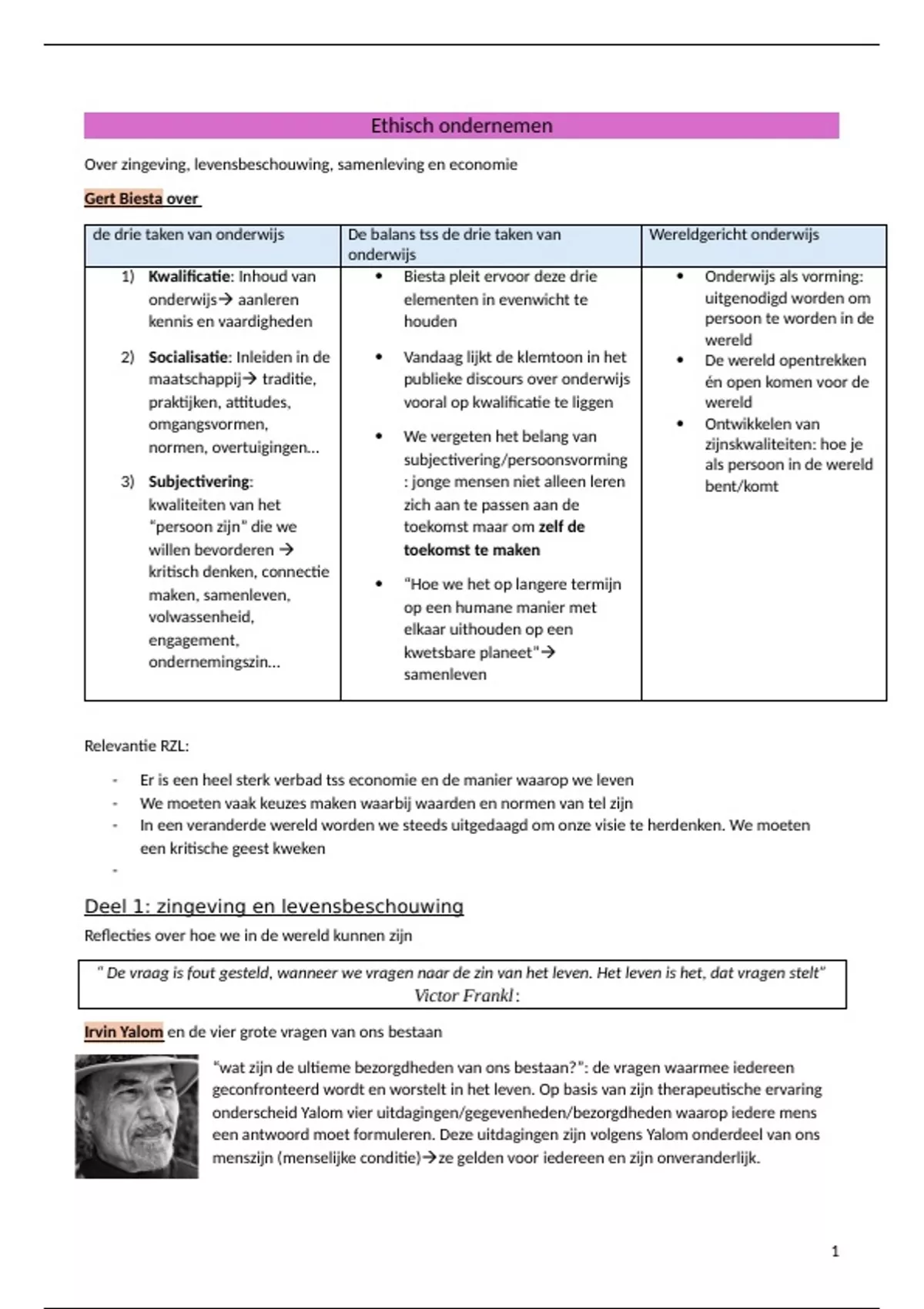 1) Kwalificatie: Inhoud van Biesta pleit ervoor deze drie Onderwijs als vorming: