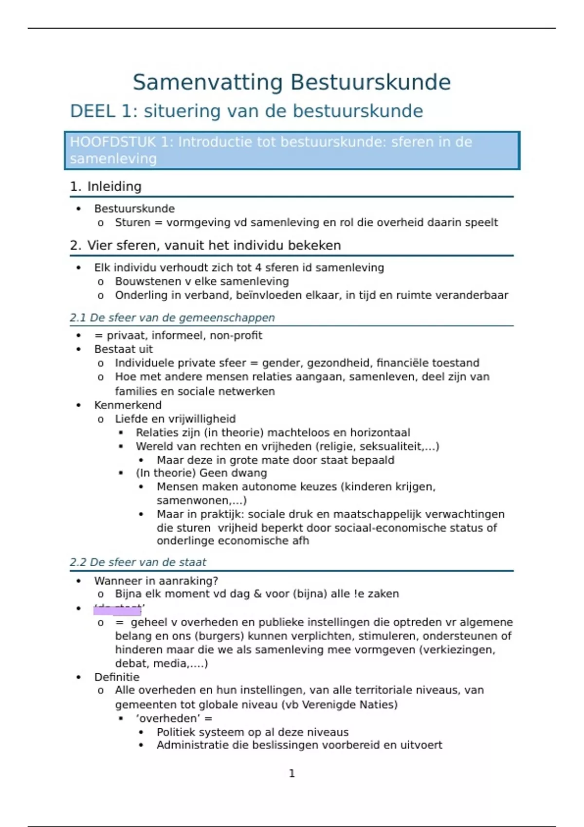 HOOFDSTUK 1: Introductie tot bestuurskunde: sferen in de