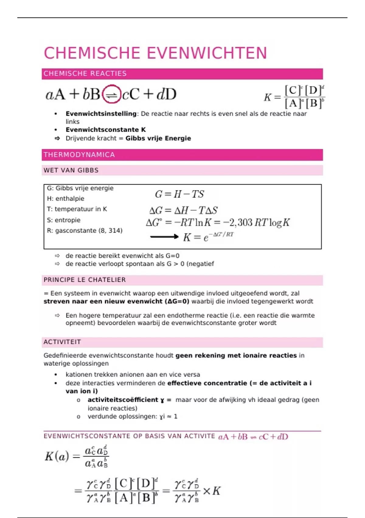 EVENWICHTSCONSTANTE OP BASIS VAN ACTIVITEITEN: