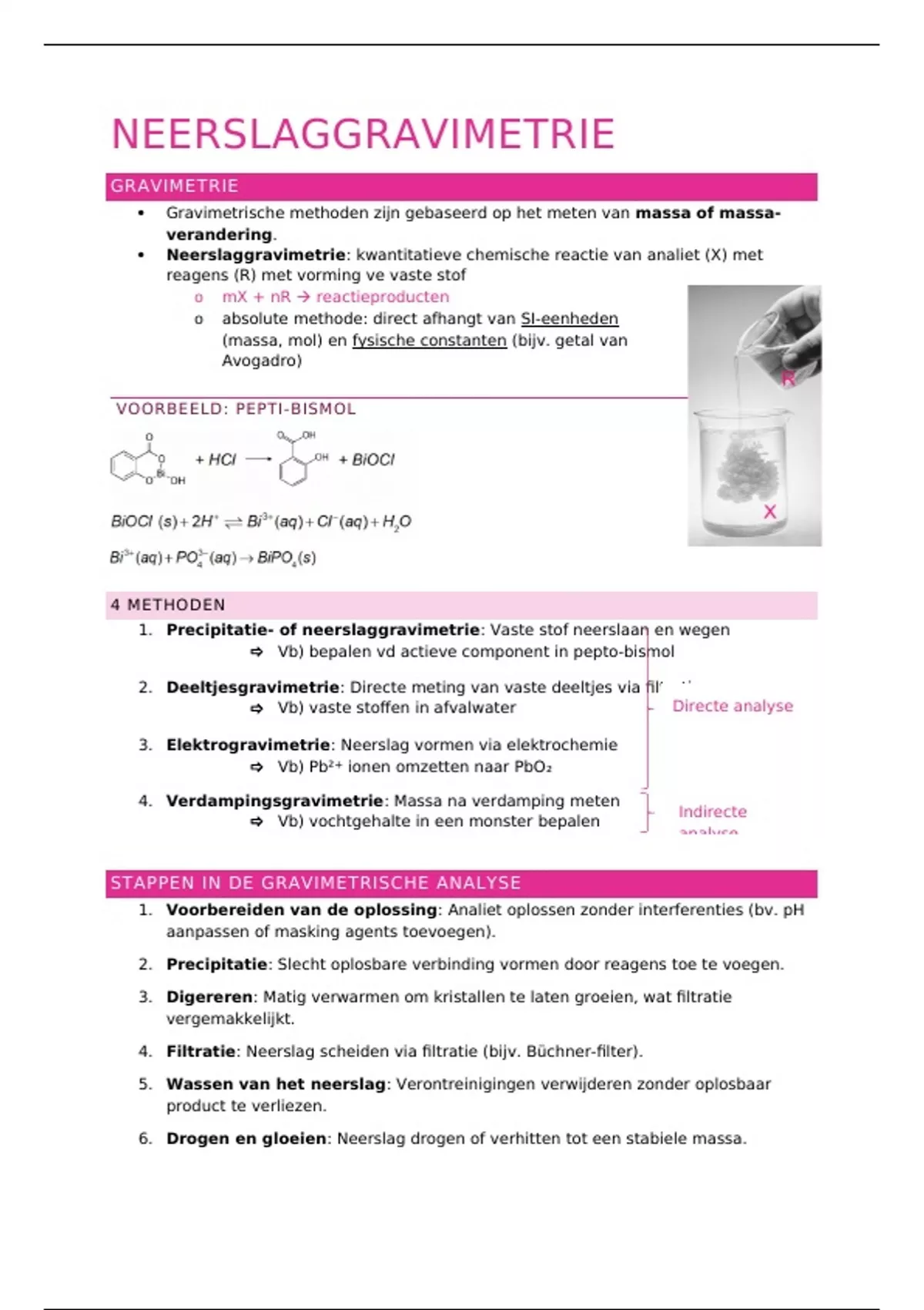 1. Precipitatie- of neerslaggravimetrie: Vaste stof neerslaan en wegen