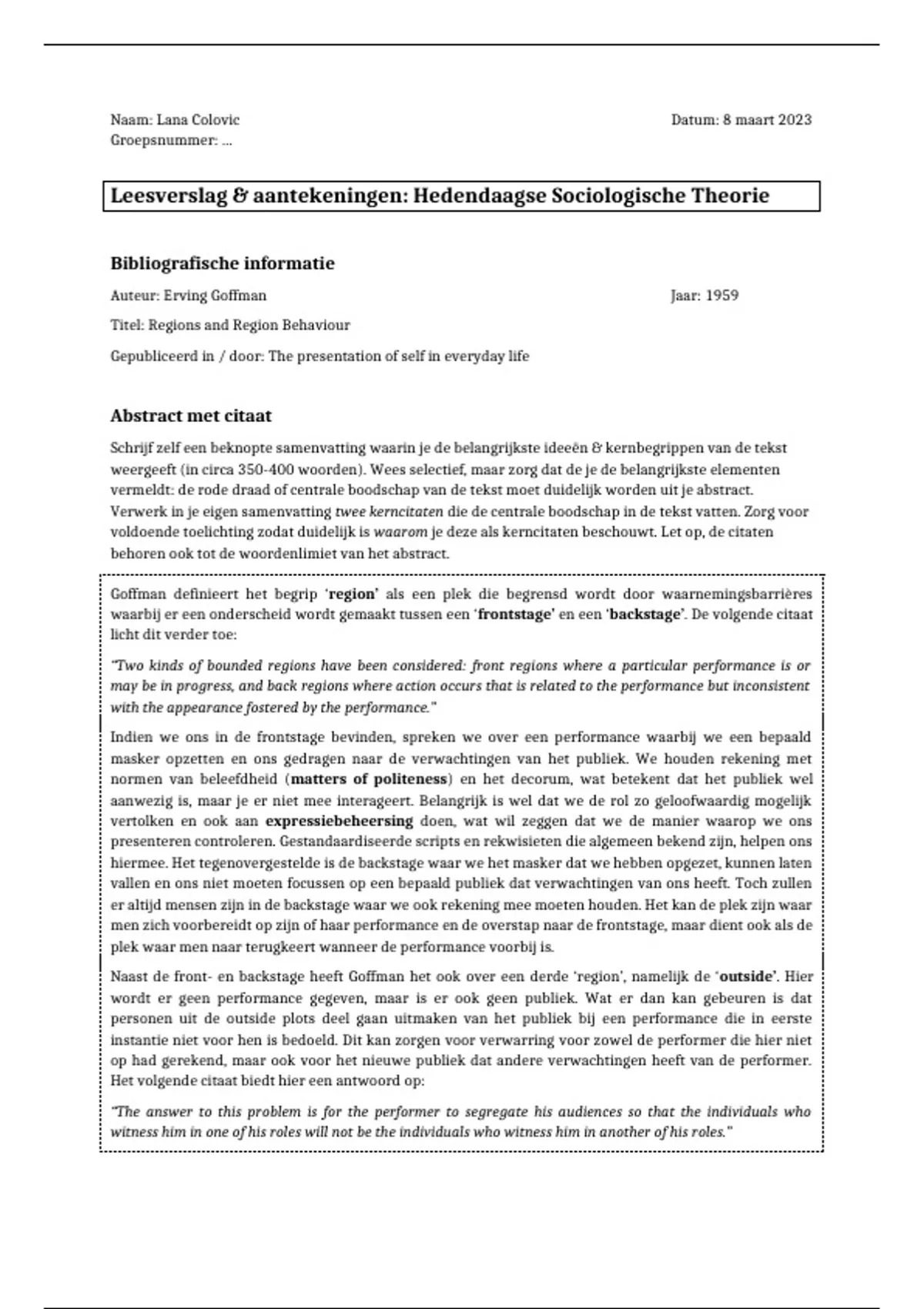 Leesverslag & aantekeningen: Hedendaagse Sociologische Theorie