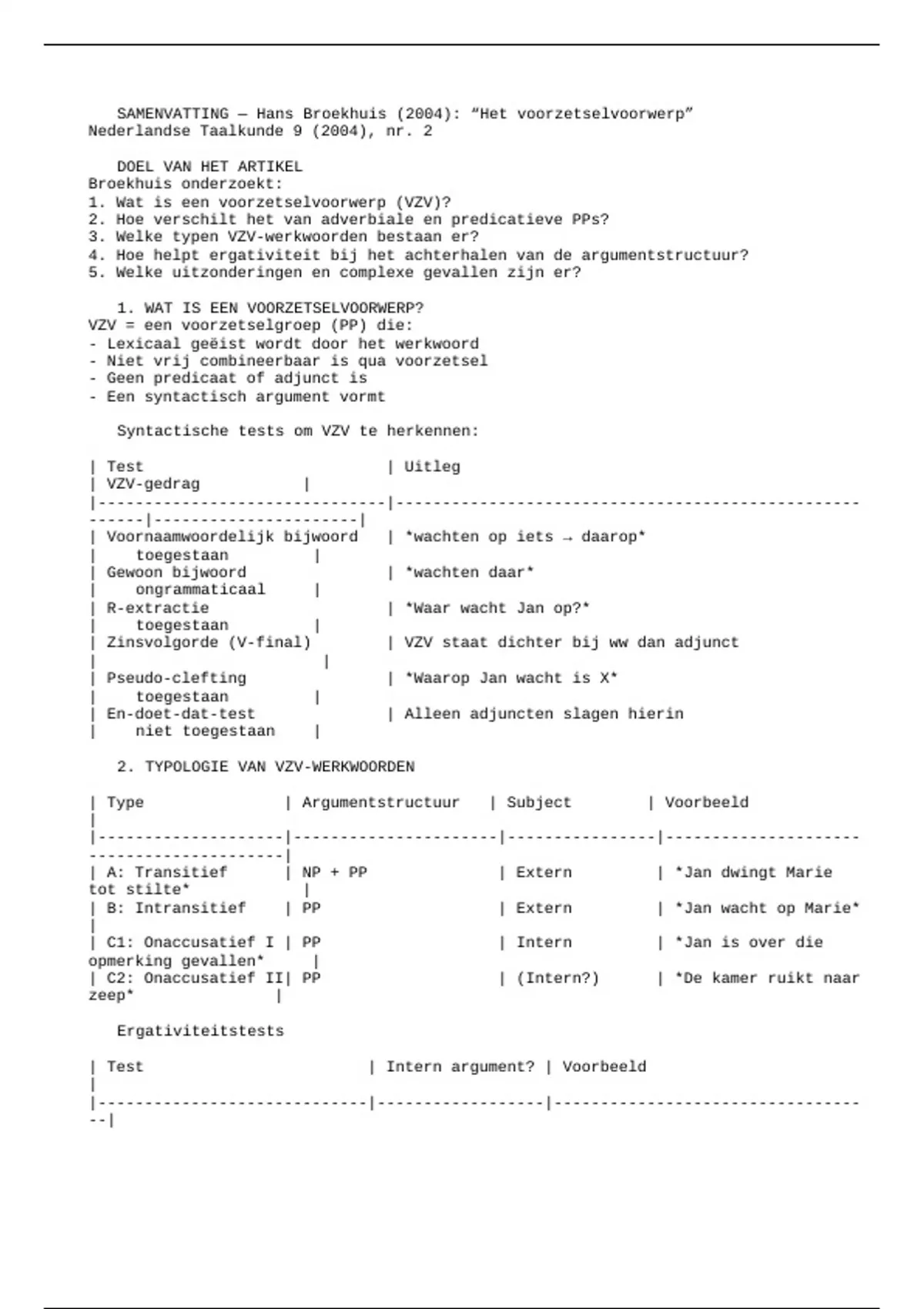 📘 SAMENVATTING — Hans Broekhuis (2004): “Het voorzetselvoorwerp”