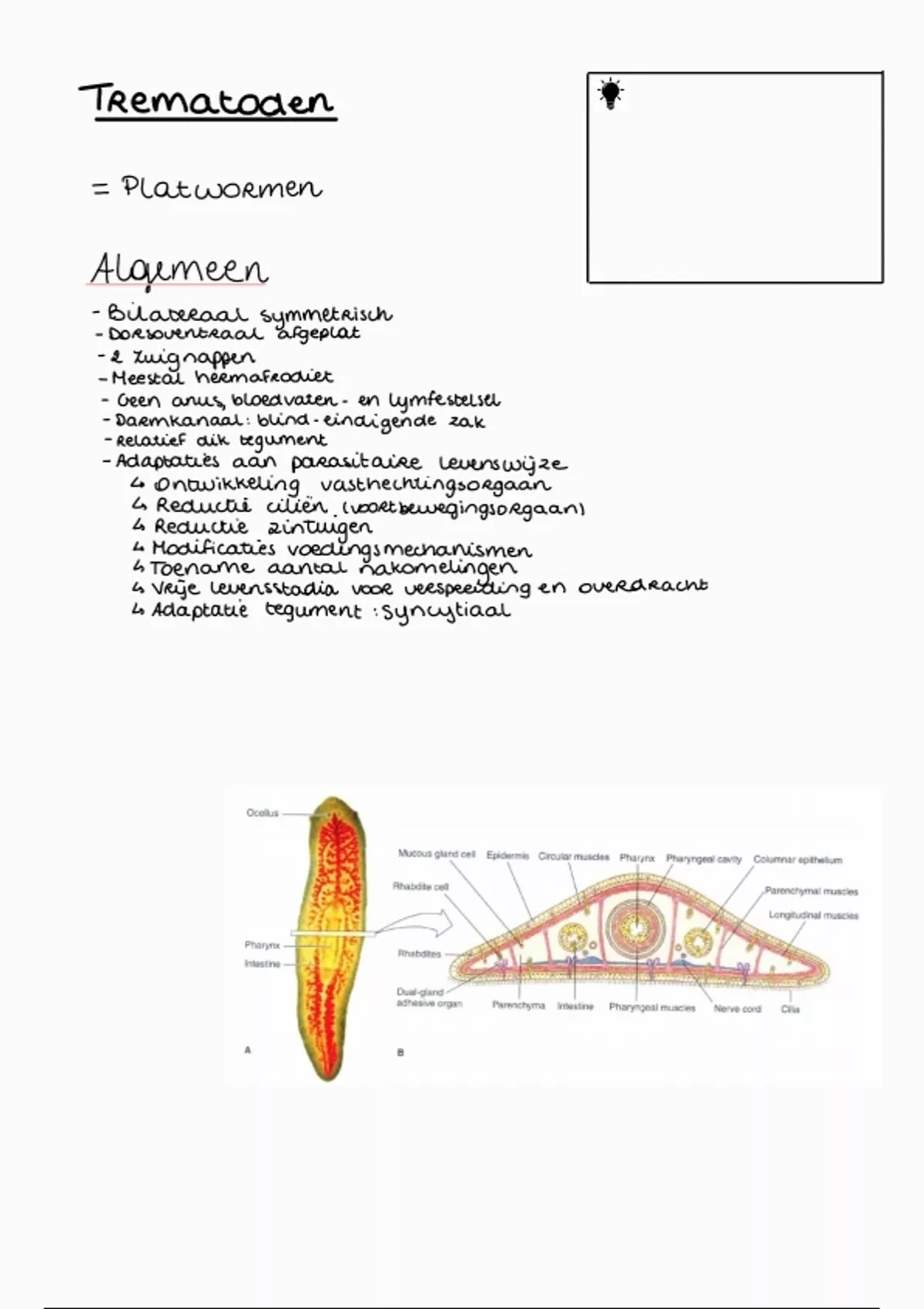 Samenvatting Trematoden - Overzichtelijke fiches met belangrijkste informatie per parasiet