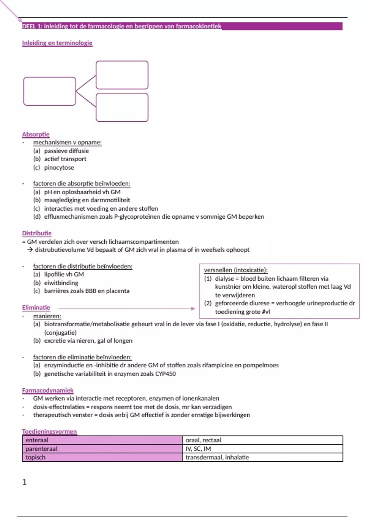 DEEL 1: inleiding tot de farmacologie en begrippen van farmacokinetiek