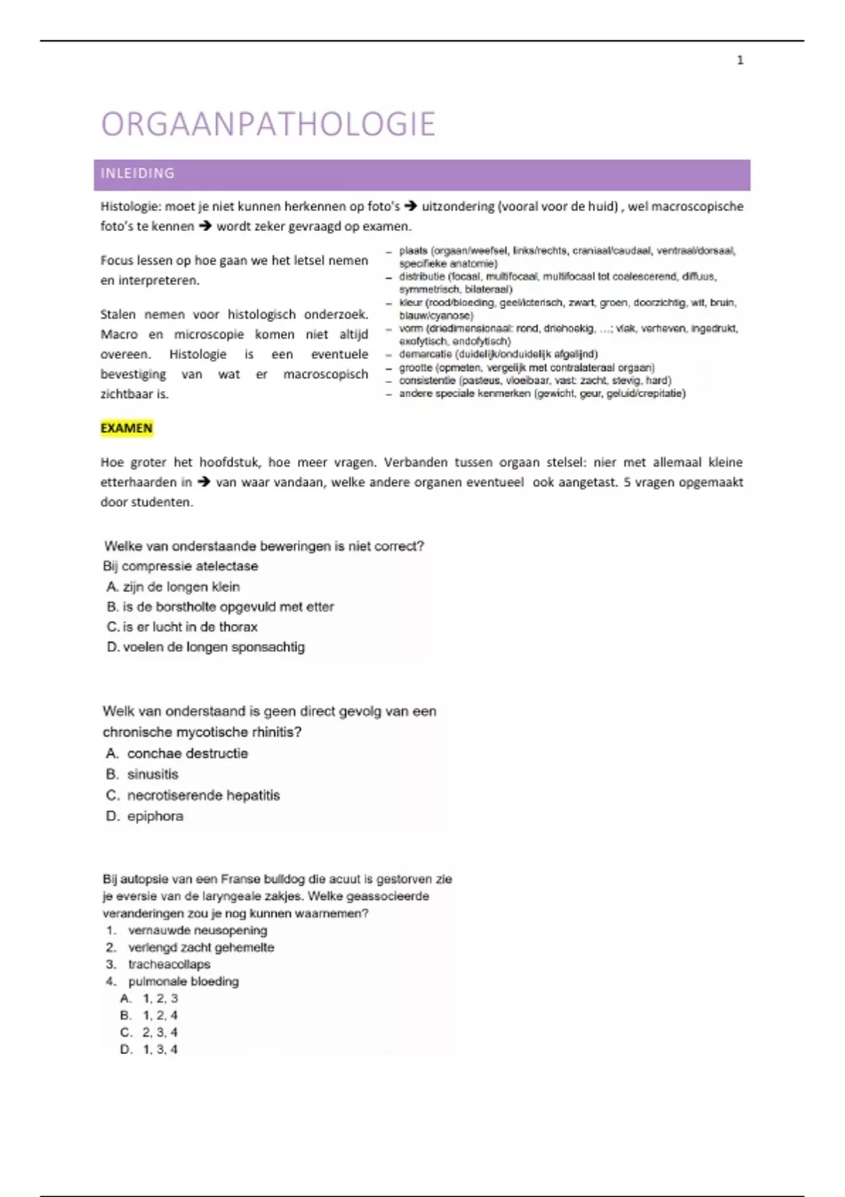 Zelfgemaakte cursus van alle afbeeldingen die besproken zijn in de les. Alles wat hij gezegd heeft staat genoteerd en op de afbeeldingen staat ook aangeduid wat er van belang is. Plus meerkeuzevragen die opgesteld op basis van de lessen zijn heb ik bijgevoegd voor te kunnen oefenen.