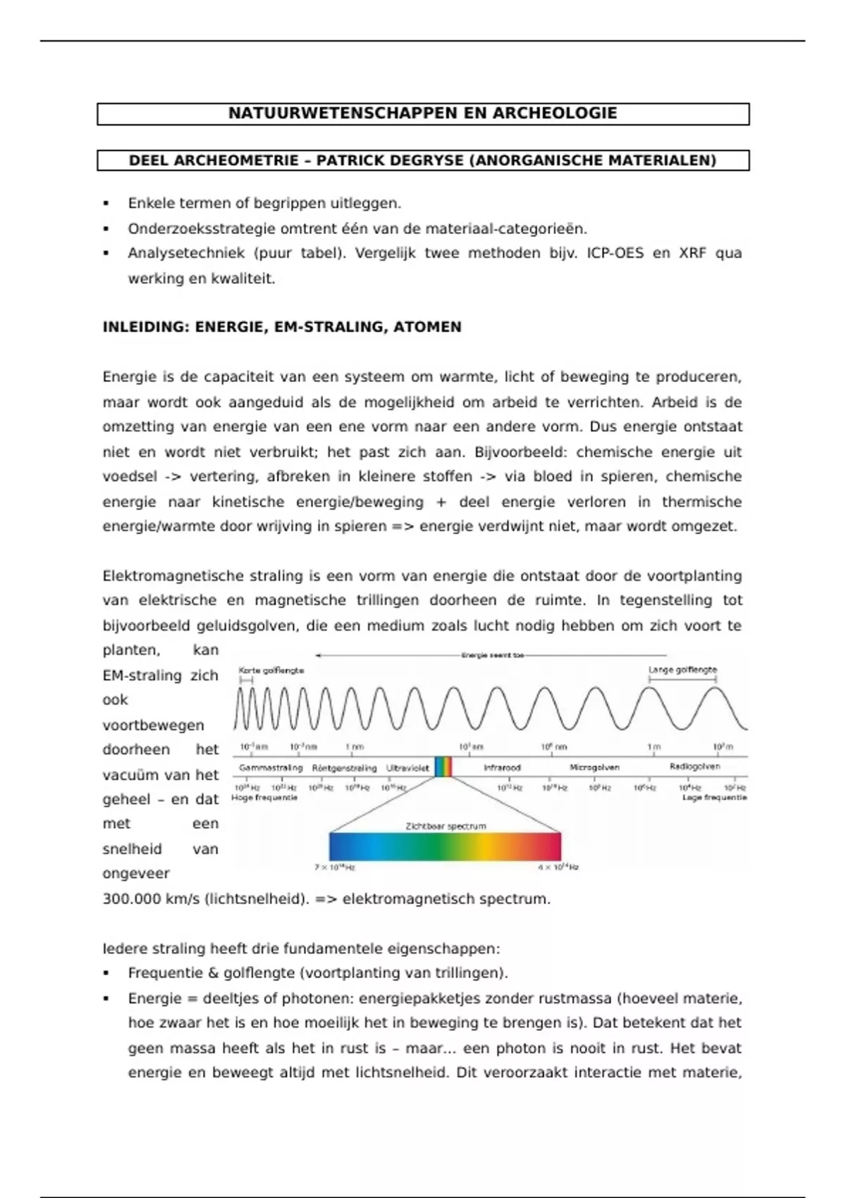 Samenvatting Natuurwetenschappen en archeologie (F0IC3A)