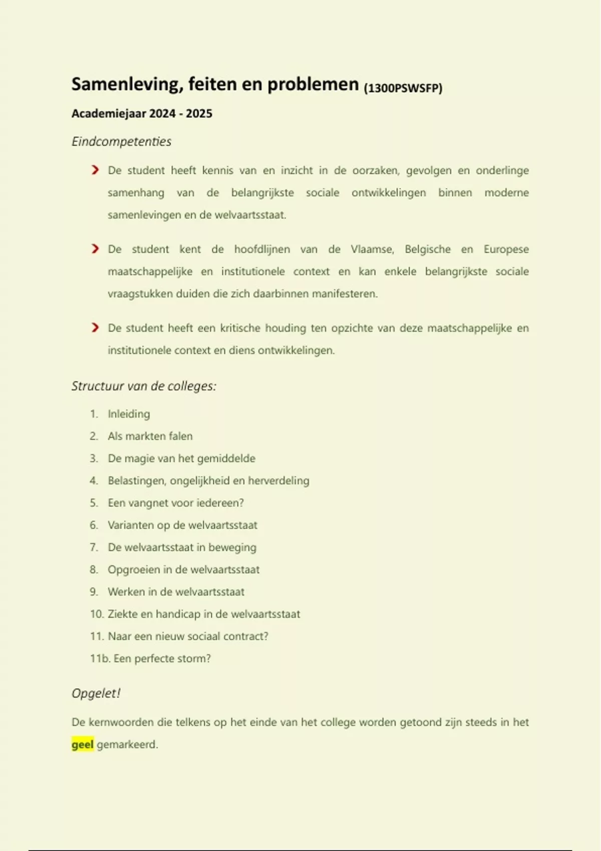 De kernwoorden die telkens op het einde van het college worden getoond zijn steeds in het