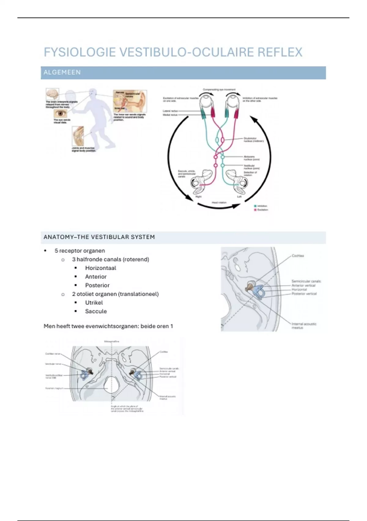 Men kan nooit de fysiologie van 1 evenwichtsorgaan bekijken want ze werken altijd met twee. Het