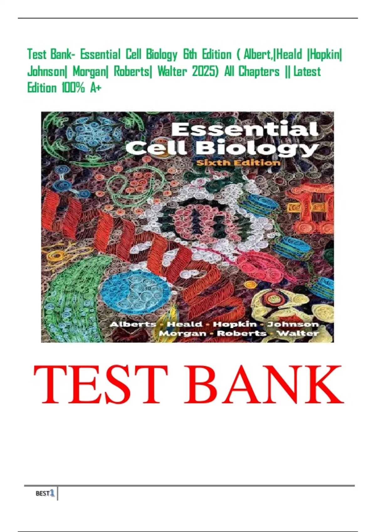 Test Bank- Essential Cell Biology 6th Edition (Albert,|Heald |Hopkin| Johnson| Morgan| Roberts| Walter 2025) All Chapters || Latest Edition 100% A+
