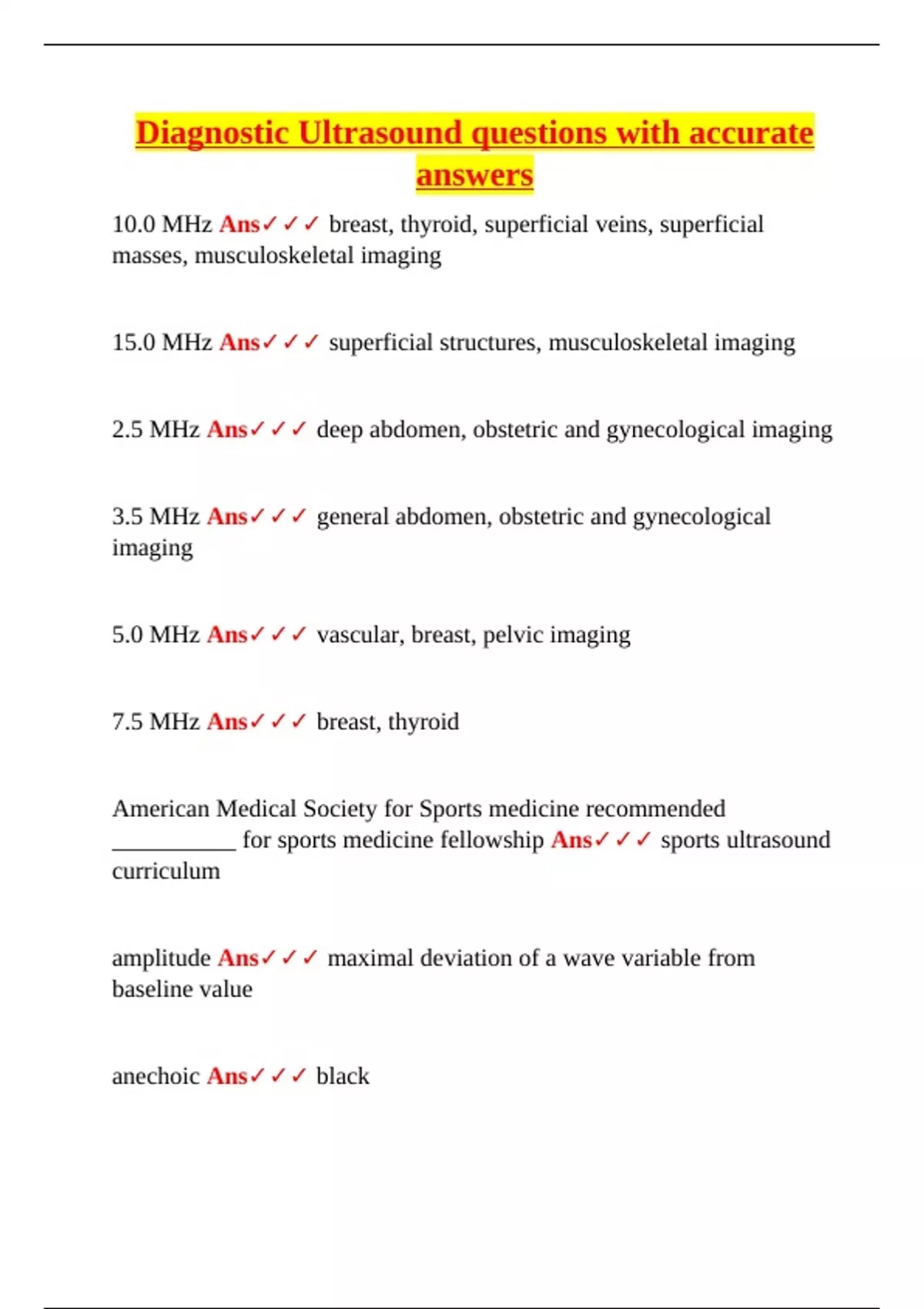 7.5 MHz Ans✓✓✓ breast, thyroid