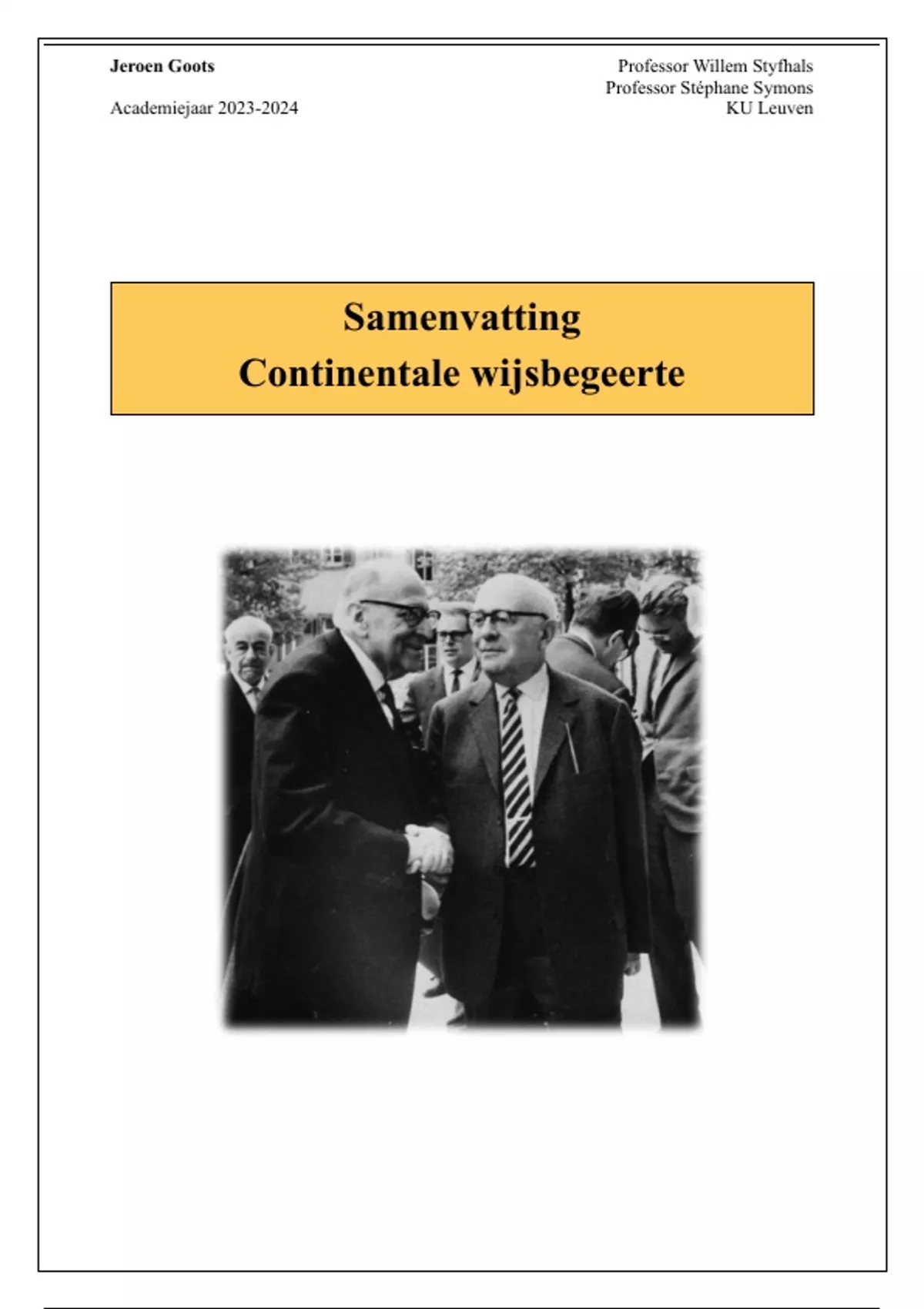 Samenvatting Continentale wijsbegeerte (17/20) (incl. handboek)