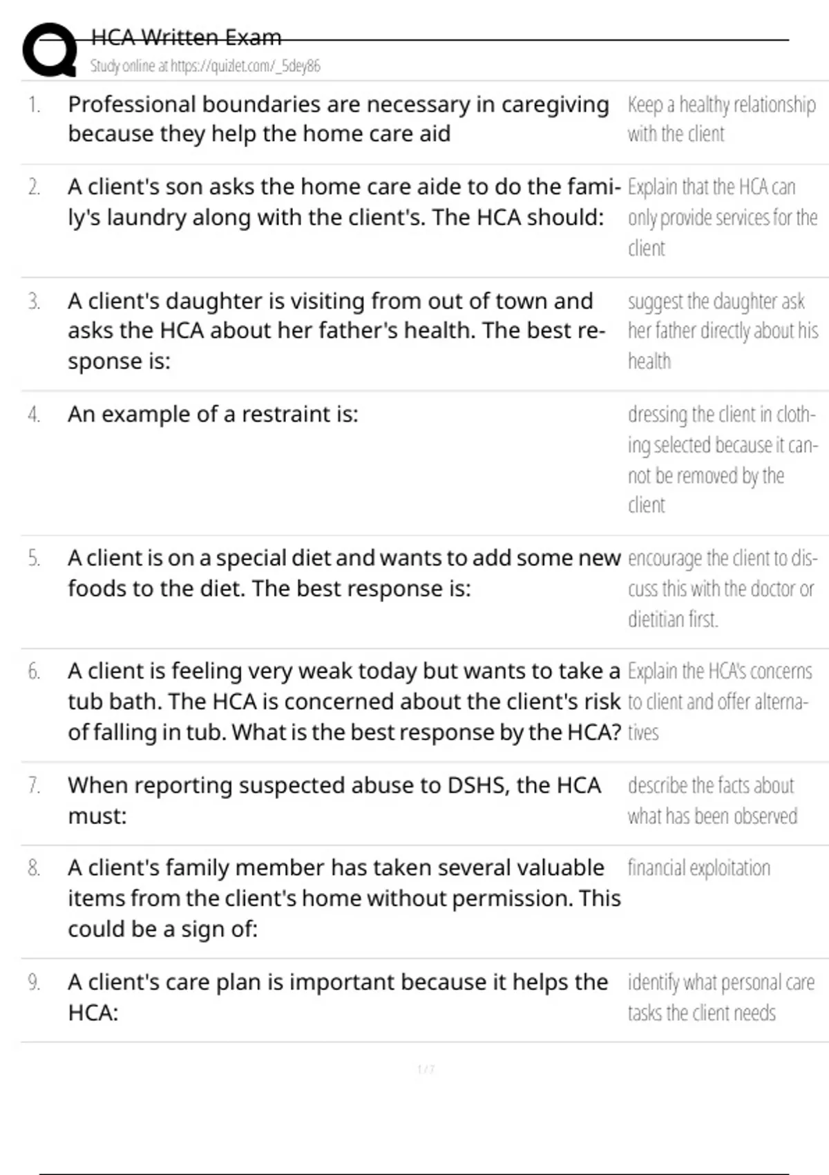 2. A client's son asks the home care aide to do the fami- Explain that the HCA can