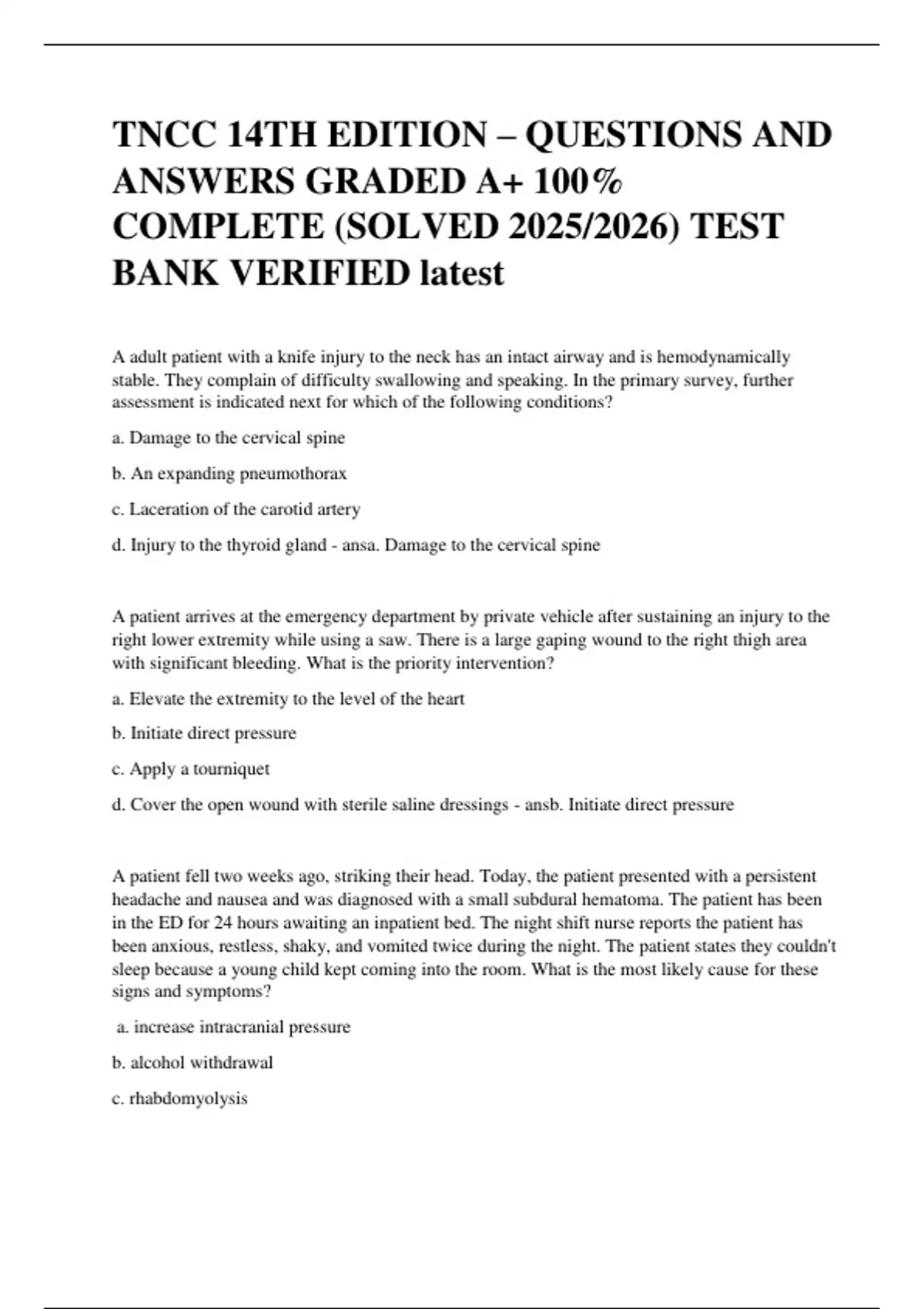 a. Damage to the cervical spine