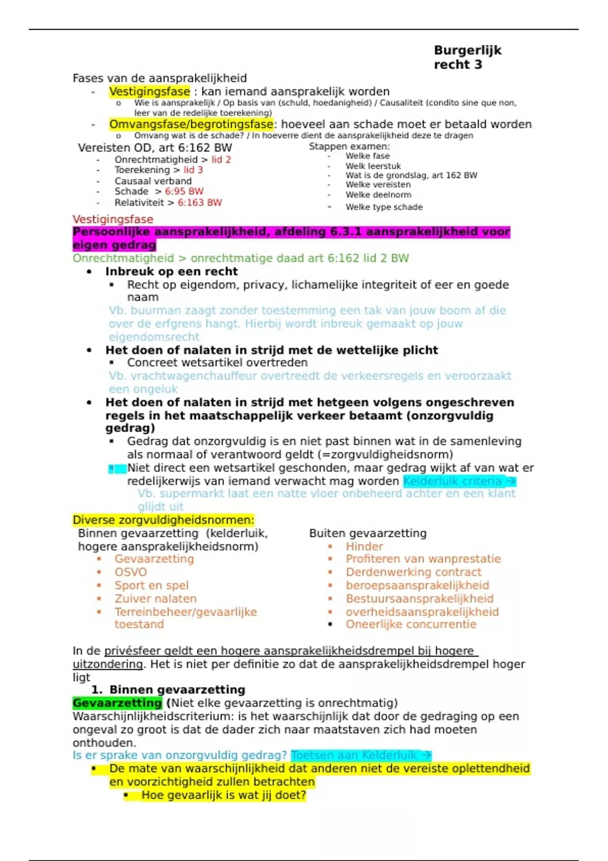 Vereisten OD, art 6:162 BW Stappen examen: