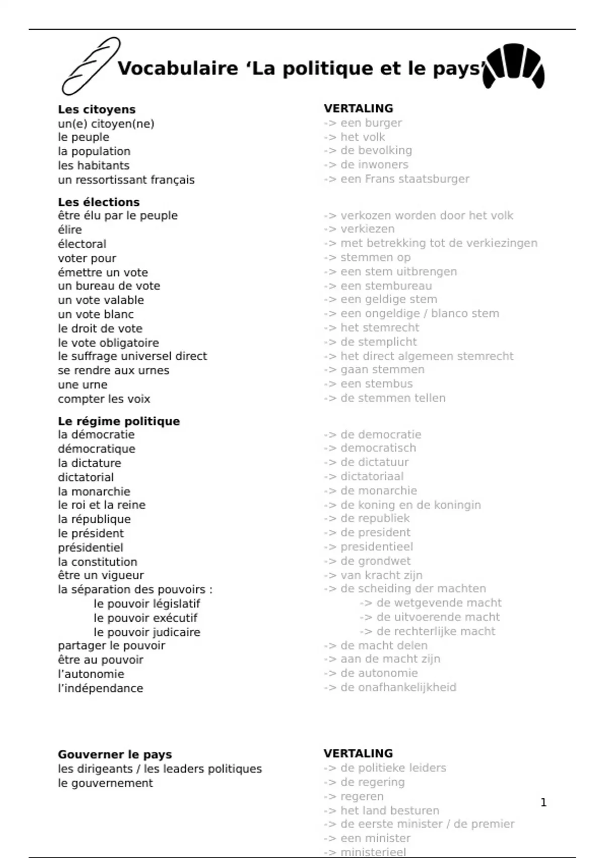 Vocabulaire ‘La politique et le pays’