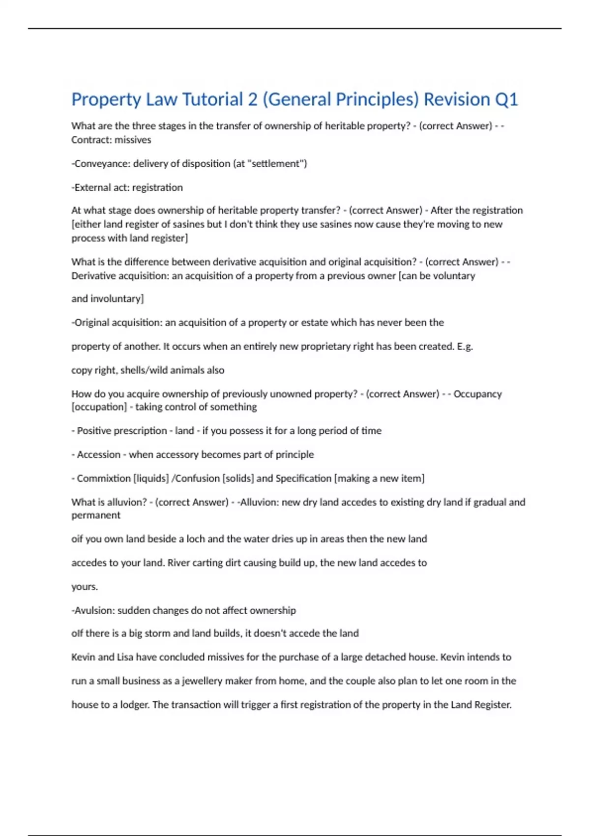 What are the three stages in the transfer of ownership of heritable property? - (correct Answer) - -
