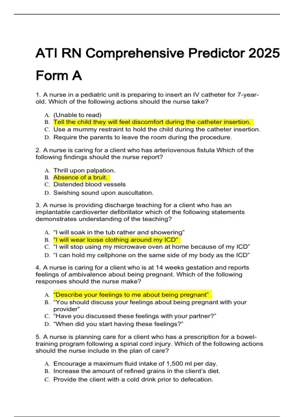 1. A nurse in a pediatric unit is preparing to insert an IV catheter for 7-year-