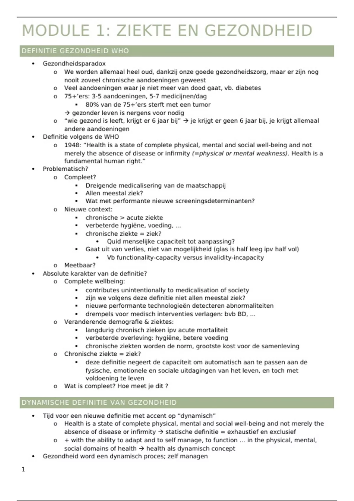 MODULE 1: ZIEKTE EN GEZONDHEID