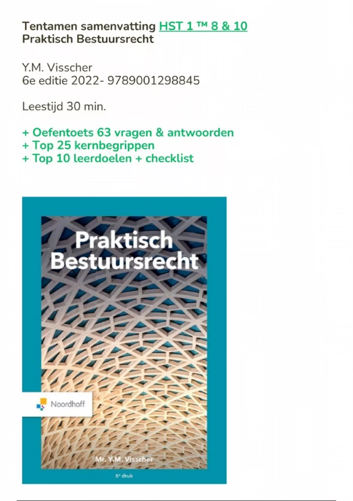 , Mooie compacte samenvatting, leestijd half uurtje. Alleen wat belangrijk is voor tentamen.