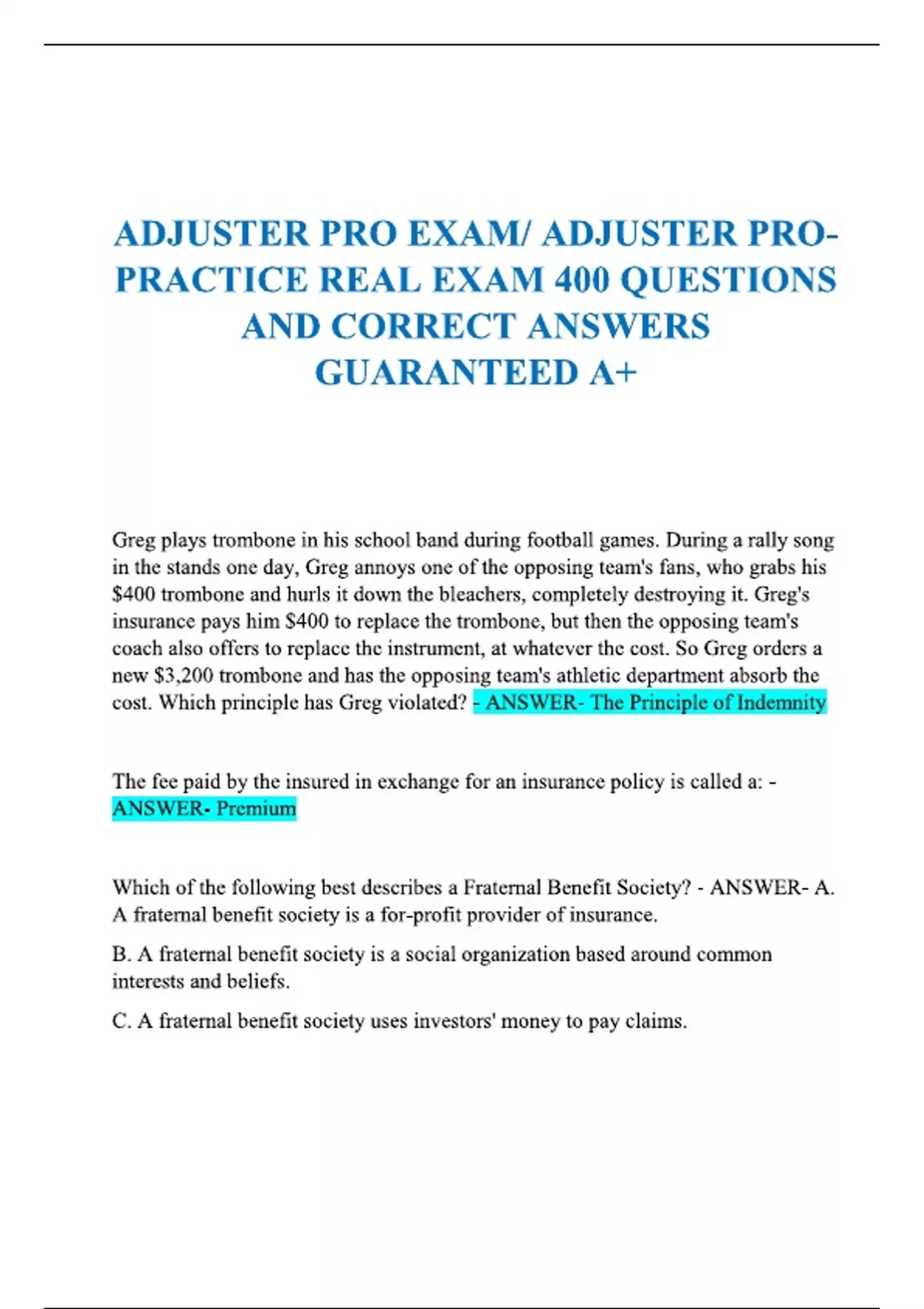 Exam of 141 pages for the course Adjuster pro at Adjuster pro (ADJUSTER PRO EXAM)