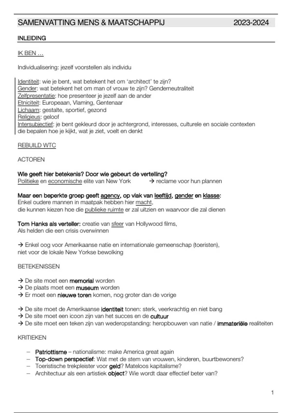 SAMENVATTING MENS & MAATSCHAPPIJ 2023-2024