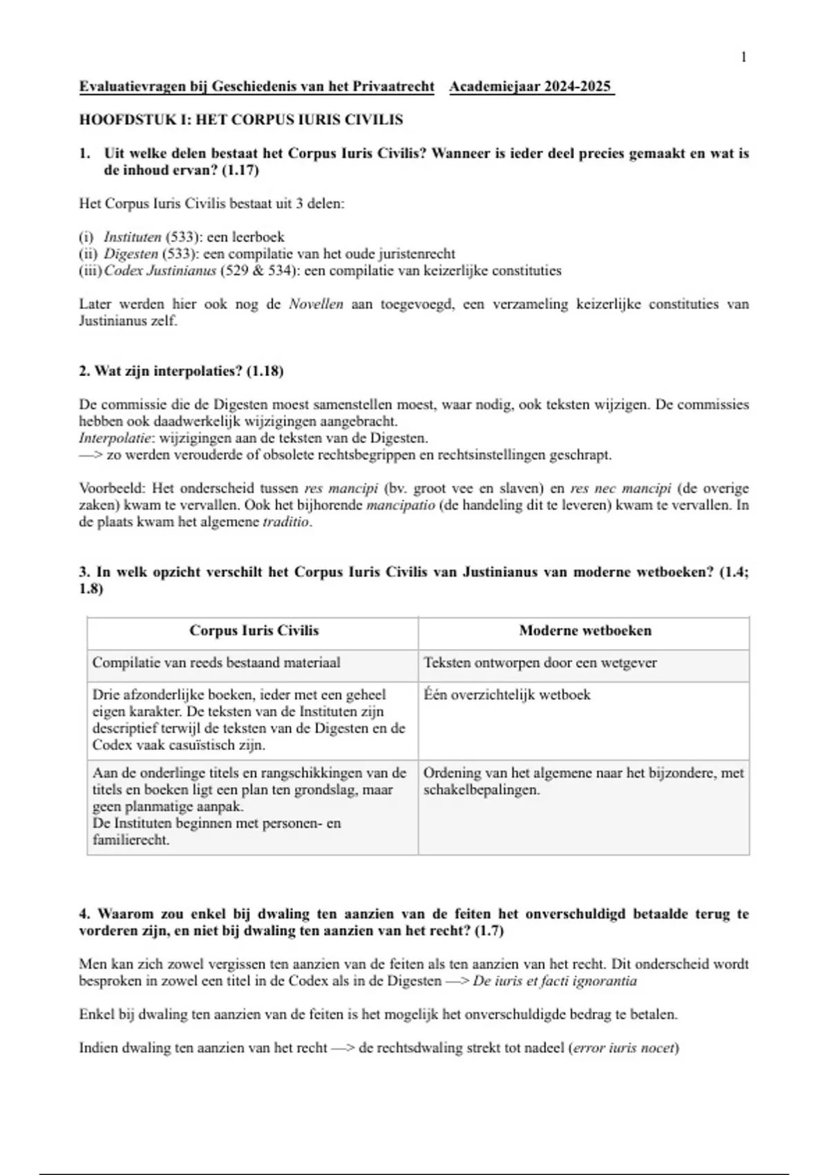3. In welk opzicht verschilt het Corpus Iuris Civilis van Justinianus van moderne wetboeken? (1.4;