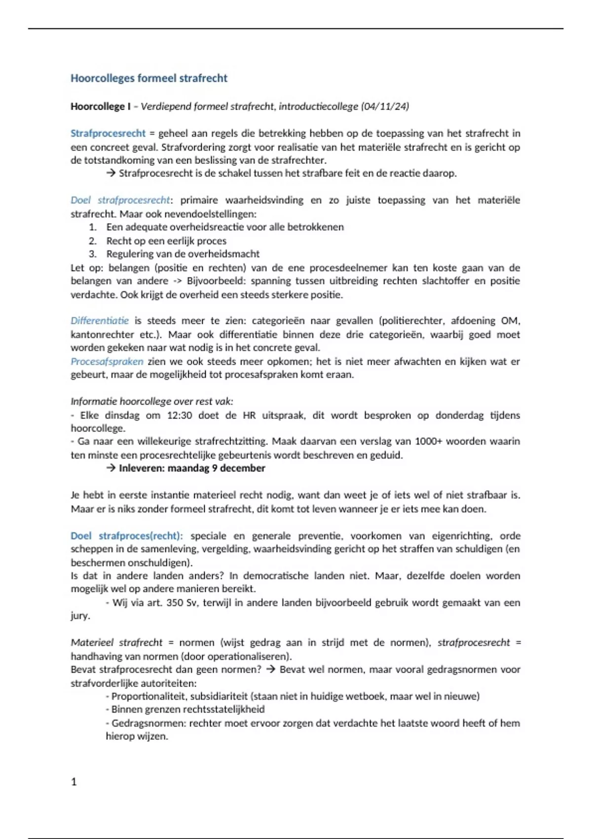 Hoorcollege I – Verdiepend formeel strafrecht, introductiecollege (04/11/24)