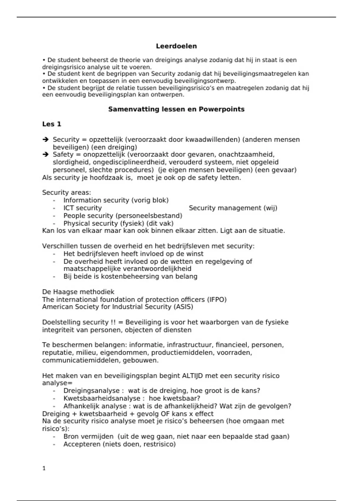 Samenvatting Security - Jaar 1 IVK Breda
