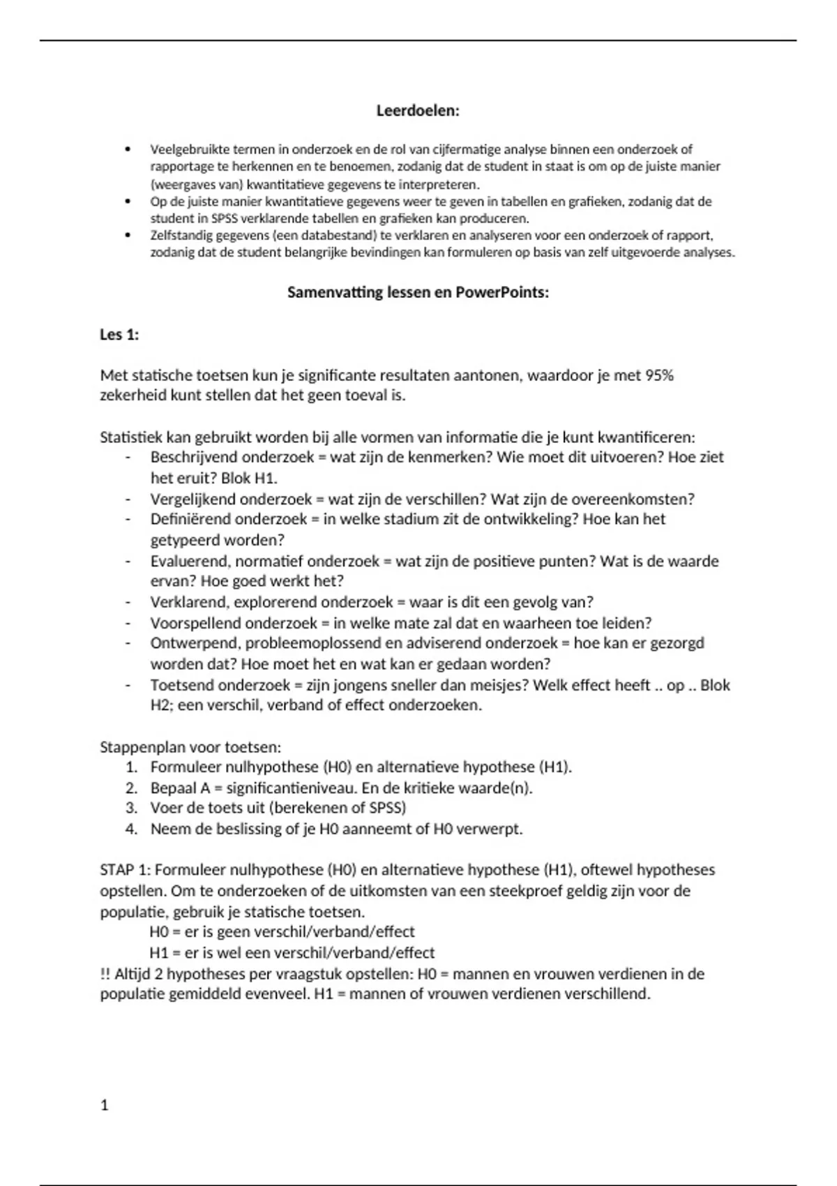 1. Formuleer nulhypothese (H0) en alternatieve hypothese (H1).