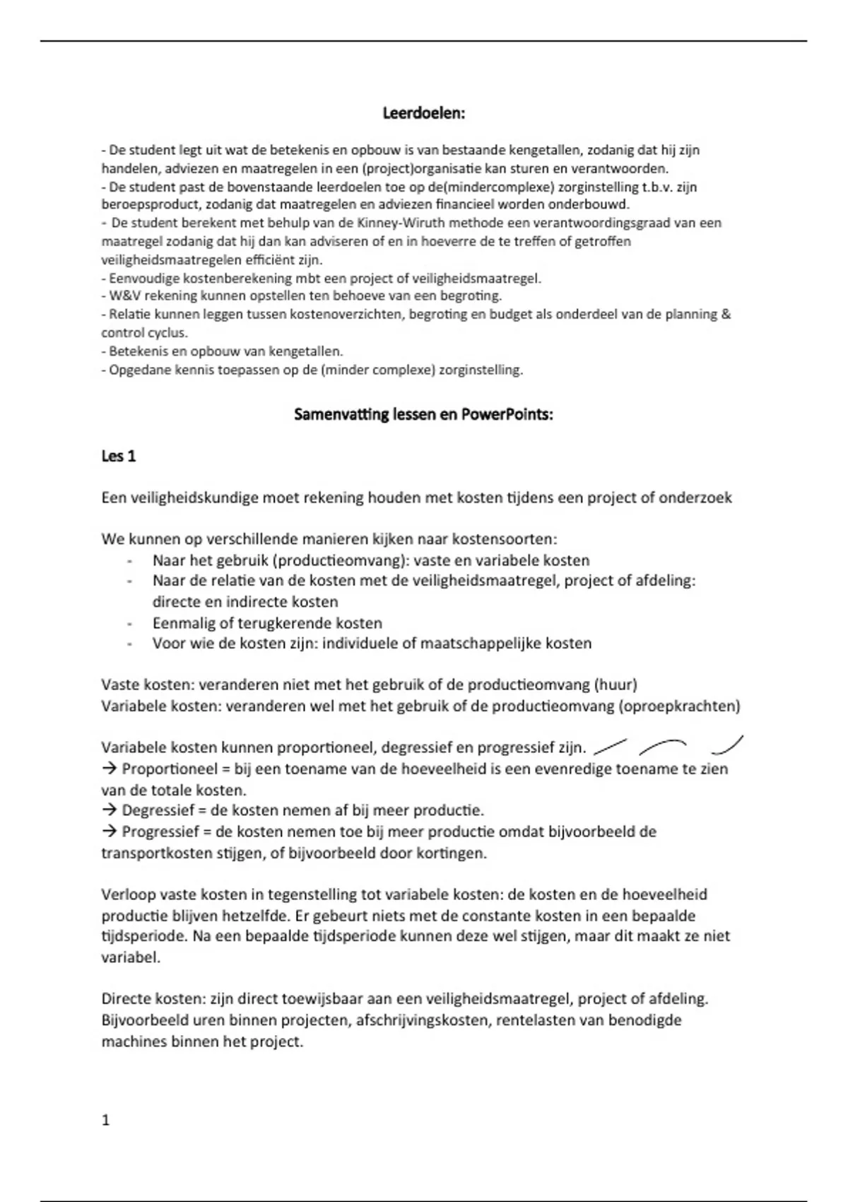 - Relatie kunnen leggen tussen kostenoverzichten, begroting en budget als onderdeel van de planning &