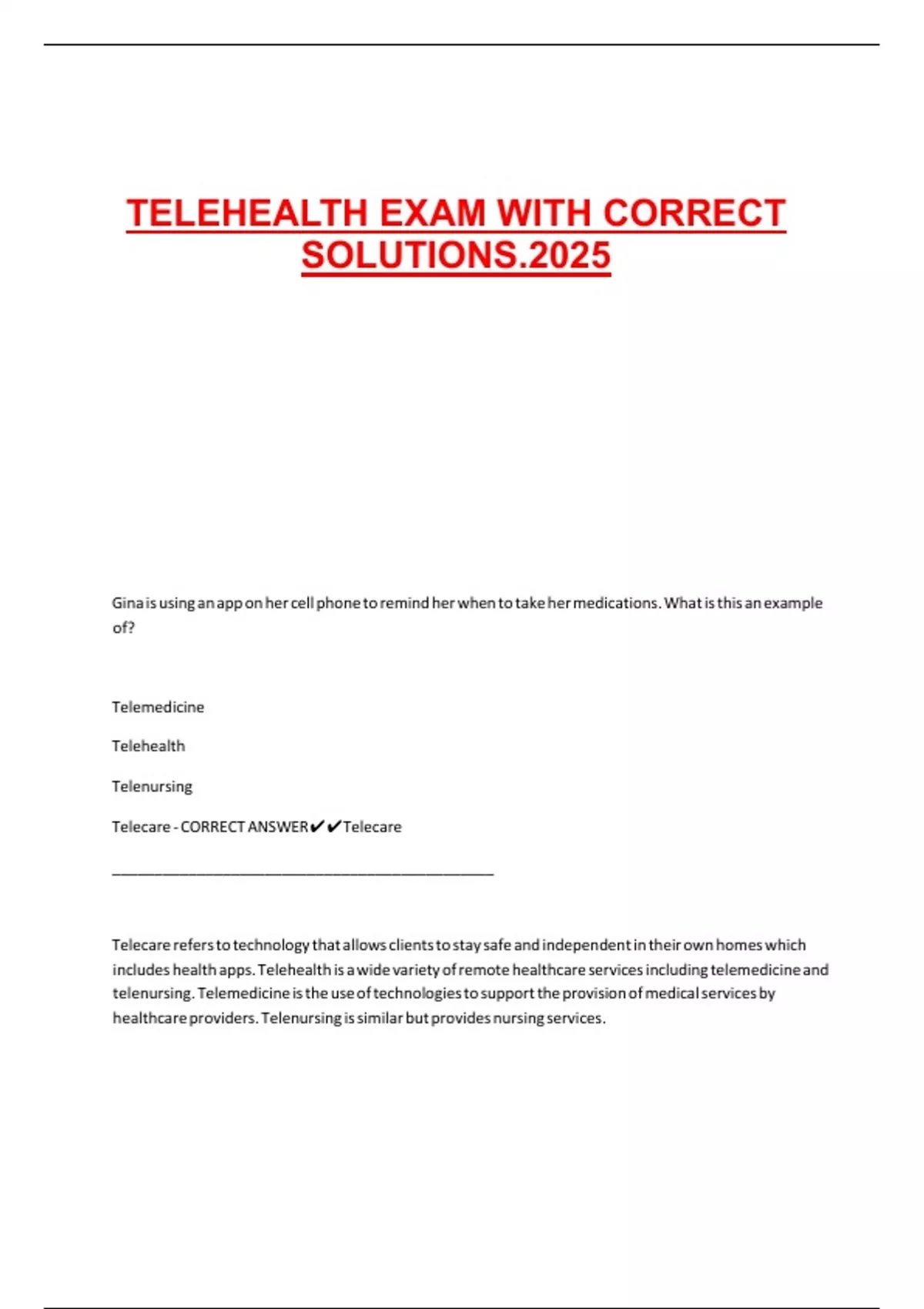 Telecare - CORRECT ANSWER✔✔Telecare