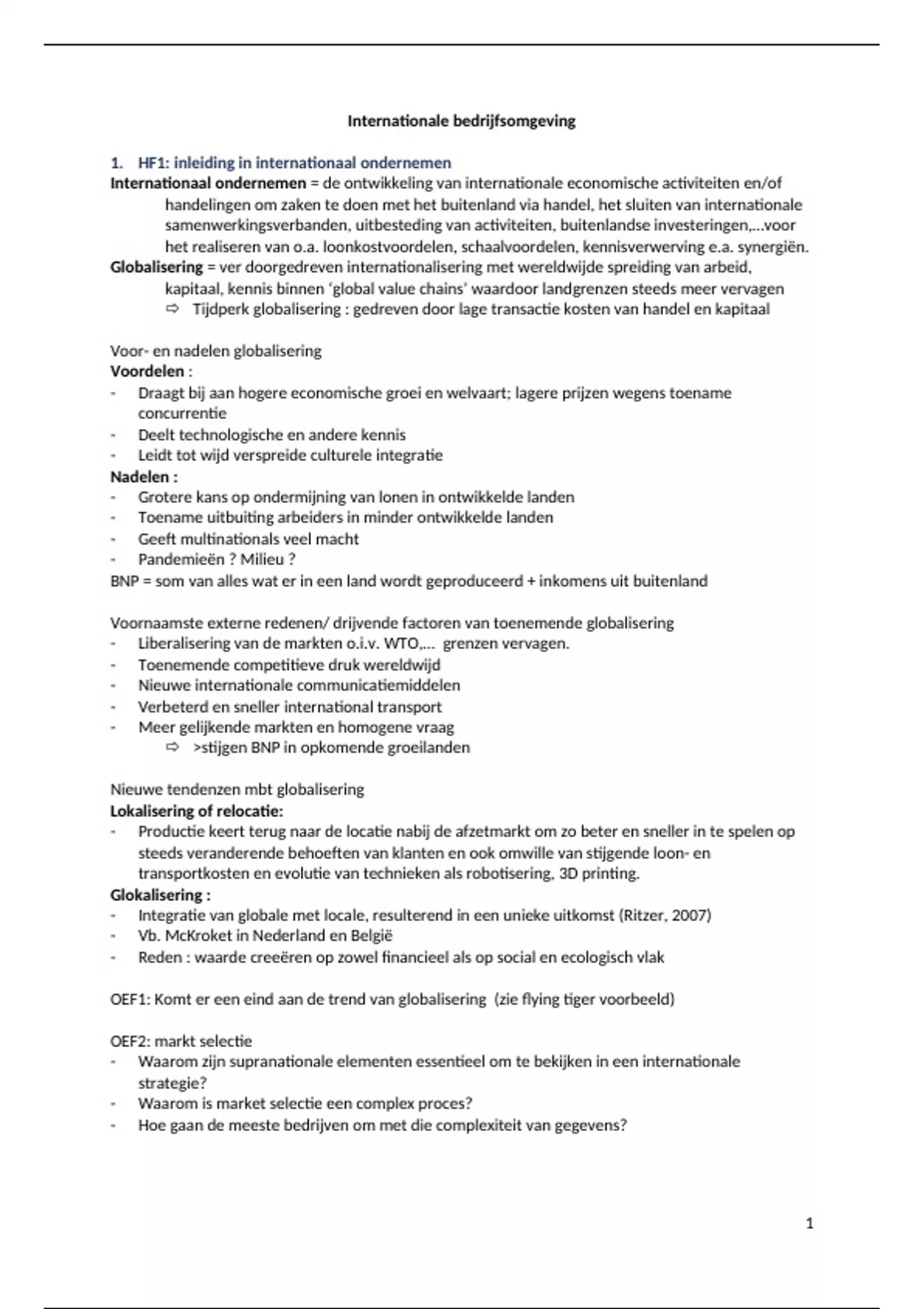 Globalisering = ver doorgedreven internationalisering met wereldwijde spreiding van arbeid,