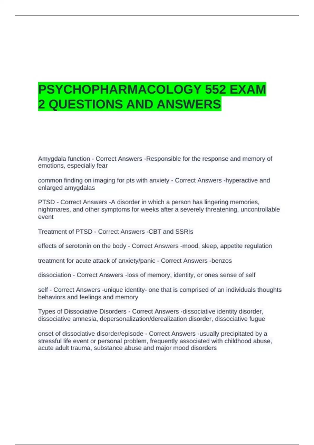 PSYCHOPHARMACOLOGY 552 EXAM 2 QUESTIONS AND ANSWERS